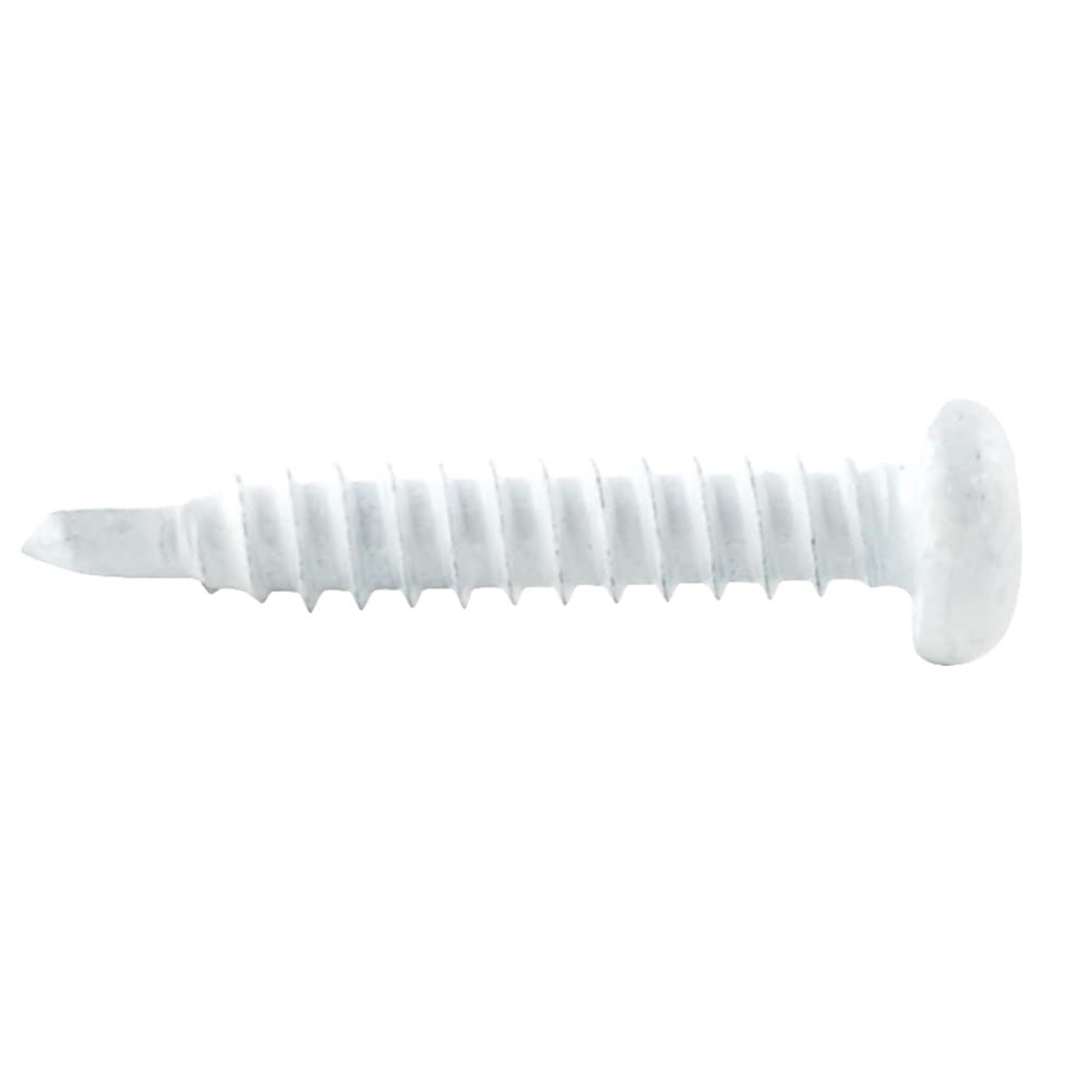 #8 Self-Tapping Pan Head Screws With A Tri-Screw Drive Approved For Mobile Home And Rv Use. Specifications Include A 1 Inch Screw Size And A White Finish. Packaged In A Reusable Plastic Container With Cover. Sold As A Pack Of 500.