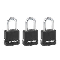 Master Lock Magnum Outdoor Padlock With Key And Weatherproof Cover, Keyed Alike Gate Locks, 3 Pack, Black And Silver