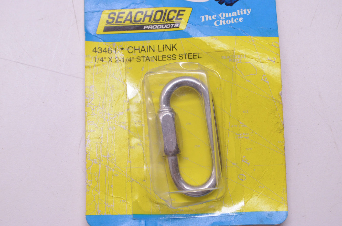 Durable Reusable Connecting Quick Link Made Of Cast Stainless Steel 1 Per Card Trade Size: 14 In Finish: Stainless Steel Material: Stainless Steel Overall Length: 2-14 In Opening: Load Capacity: 880 Lb Size: 14 In X 2-14 In Breaking Strength: 5000 Lb