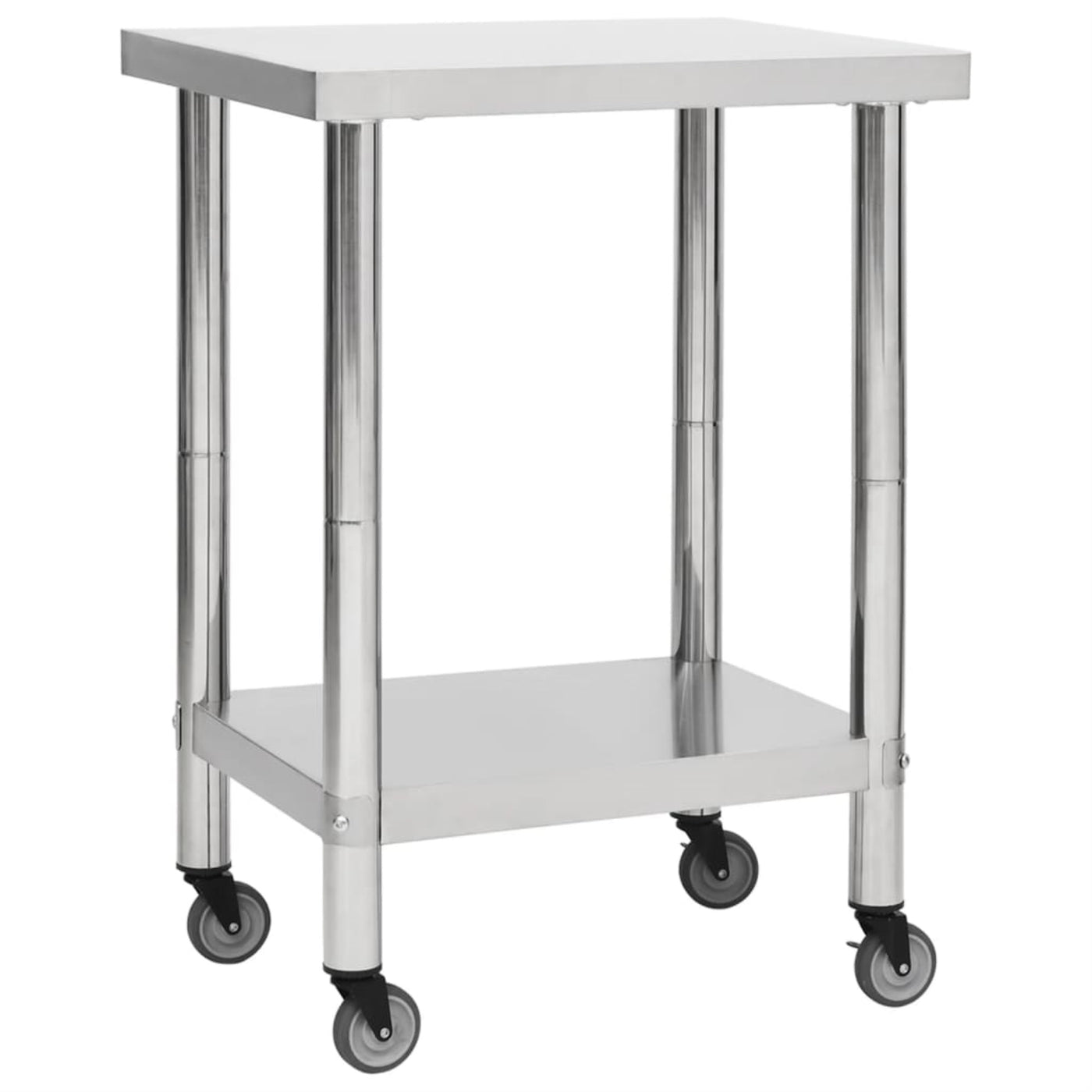 Vidaxl Kitchen Work Table With Wheels 23.6'X17.7'X33.5' Stainless Steel