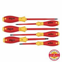 Wiha Insulated Softfinish Screwdriver Set (6 Piece Set)Head Type: Slotted, Phillips, Squareergonomic Cushion Grip Handle For Comfort And Controldual Durometer Construction For Long-Lasting Durabilityhandle Directly Molded To The Blade For Permanent Bondhandle Size Proportionate To Blade For Consistent Mechanical Advantageparallel Flats For Roll-Off Preventiontip Profile Labeled On Cap For Easy Identificationwiha Premium Quality Tool Steel For Strength And Durabilityblack Oxide Finish For Corrosion Protectionexact Fit Precision Machined Tip For Reduced Cam-Out Individually Tested To 10,000 Volts Ac And Rated To 1,000 Volts Ac For Safety And Peace Of Mind Meets Vde Testing Standards For Protection Against Arc Flash Explosion Meets Astm F1505 Standard Specifications For Insulated And Insulating Hand Tools Meets En/Iec 60900 Testing Standards For Protection Against Arc Flash Explosion Meets Nfpa-70E Standard For Electrical Safety On The Job-Site Meets Csa Testing Benchmarks For Safety And Performanceslotted Tip 3/16 X 125Mm (Oal 9.3)Slotted Tip 1/4 X 150Mm (Oal 10.6)Phillips Tip Ph #1 X 80Mm (Oal 7.5)Phillips Tip Ph #2 X 100Mm (Oal 8.6)Square Tip Sq #1 X 100Mm (Oal 8.2)Square Tip Sq #2 X 150Mm (Oal 10.5)