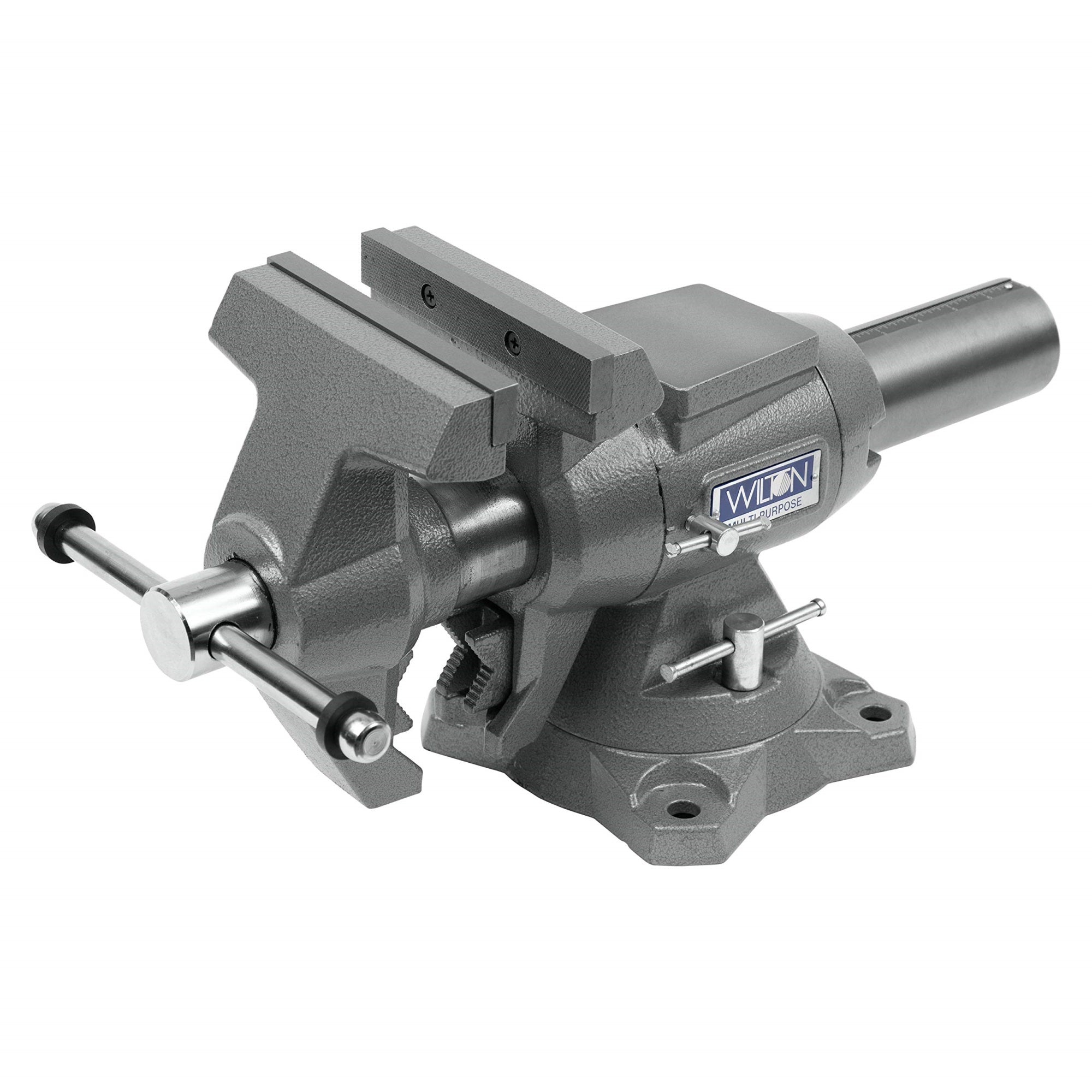 Wilton'S Multi-Purpose Bench Vise Is Ideal For Light Tradesman, Utility, Mro, And General Purpose Use. This Vise Features A 360-Degree Rotating Head To Clamp Material At Any Angle, 30-Degree Indexing Increments For Quick Set Up, Replaceable Pipe Jaws, And A V-Jaw To Easily Hold Round Objects Vertically. The Body And Movable Jaw Are 30,000 Psi Gray Cast Iron, And The Base Is 60,000 Psi Ductile Iron, Providing Durability Through A Wide Range Of Applications.