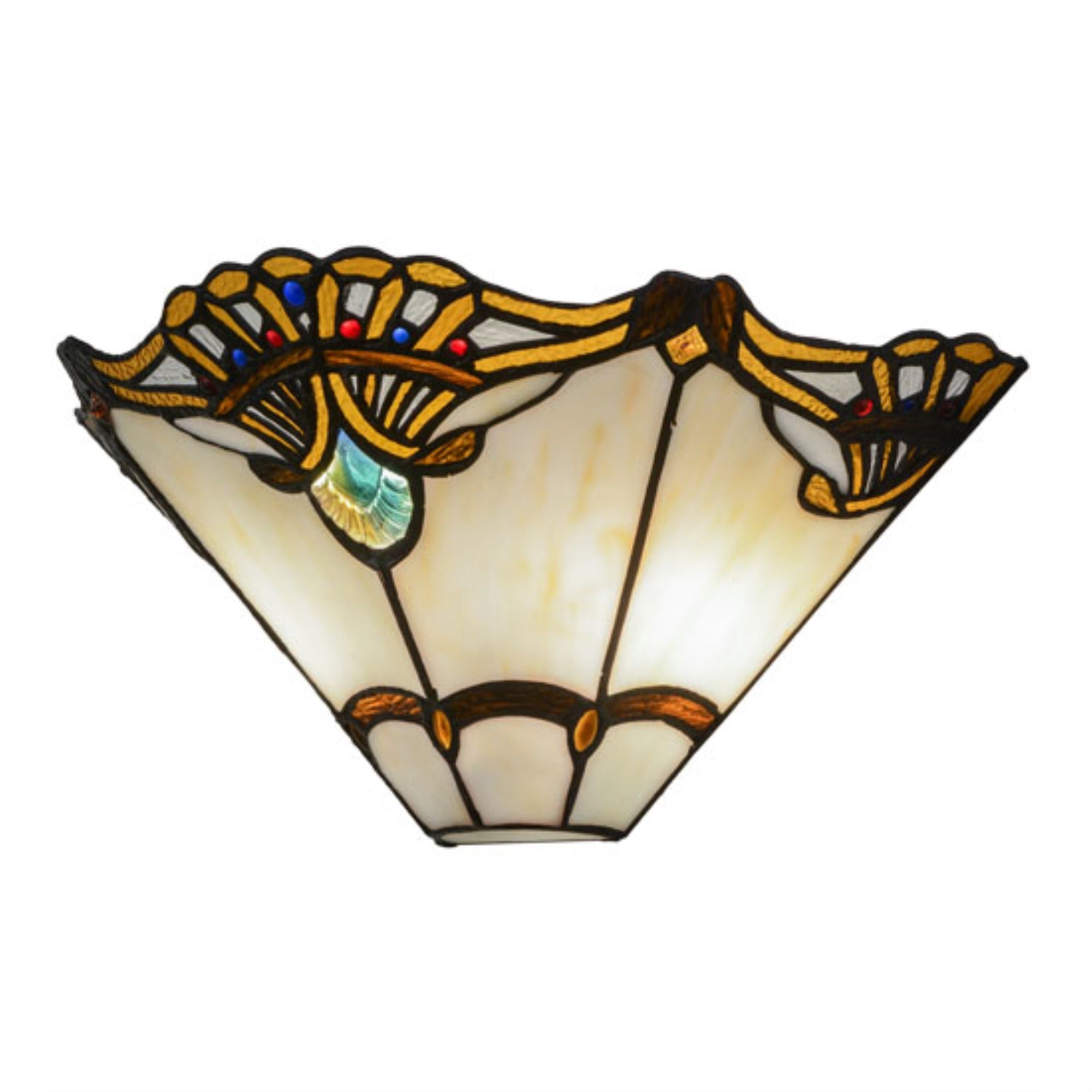 144020 14.5'W Shell With Jewels Wall Sconce Manufacturer By Meyda. Oceanic Iridescent Blue/Green Jeweled Nautical Shells; Surrounded By Blue And Red Jewels; Highlight An Intricate Art Nouveau Motif In Amber And Clear Ripple Glass; Accented With Iridescent Amber Formed Jewels On Bone Beige. A Multicolored Ringlet Motif Featured On Bottom Accented With Amber Oval Jewels While Amber Diamond Shaped Jewels Accent The Top. The Shade Was Handcrafted Using Meyda Tiffany'S Famous Copper Foil Construction Process. Lens Color : Amber Glass (Not Mica);Chocolate;Beige;White, Made In China