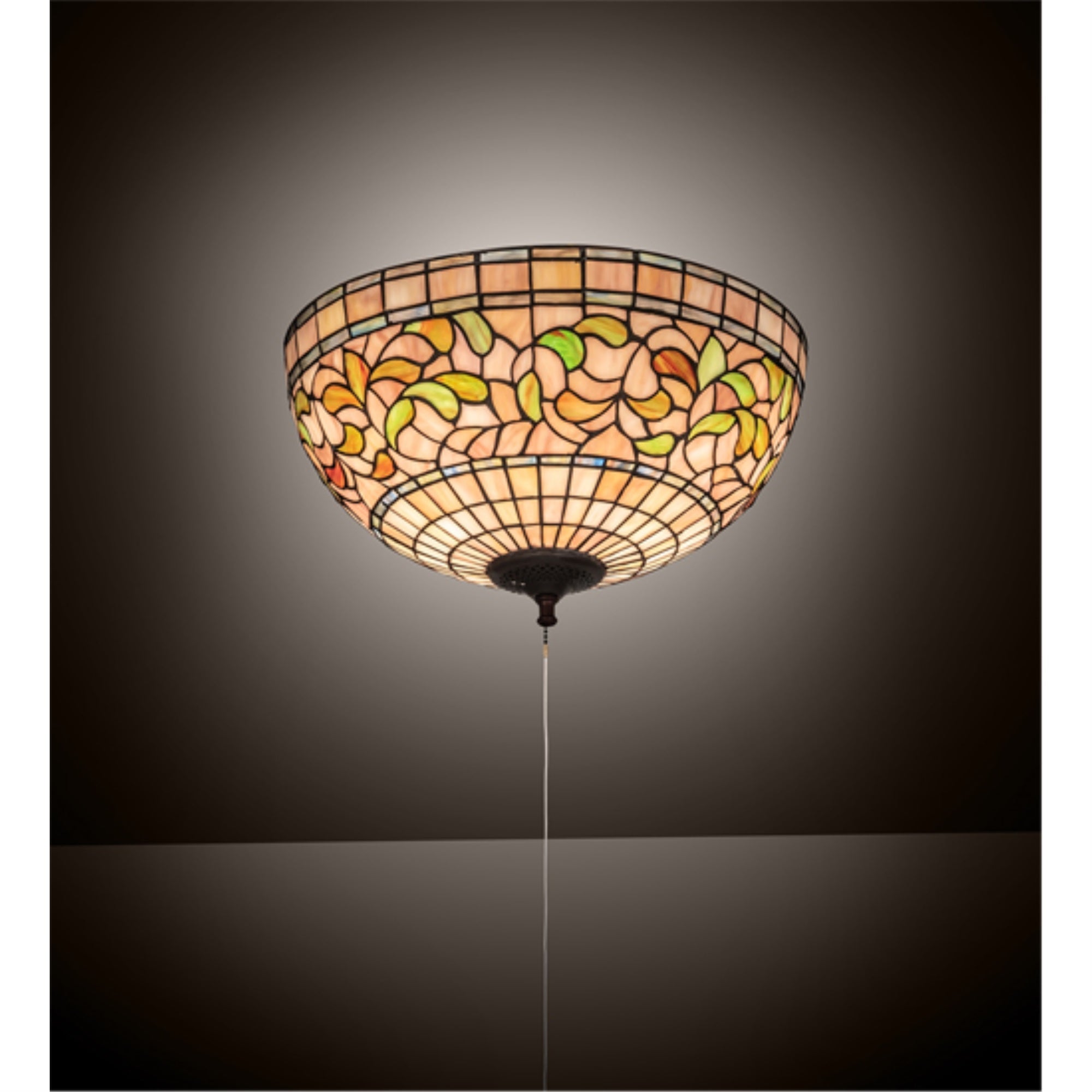 214929 16' Wide Tiffany Turning Leaf Flushmount Manufacturer By Meyda. Subtle Toned Autumn Gold; Russet And Moss Green Leaves Swirl Against An Amber Mauve Background In This Tiffany Studio Stained Glass Reproduction. The Shade Is Enhanced With Bands Of Purple; Blue And Green And Created Using The Famous Meyda Tiffany Copperfoil Construction Process. This Elegant Art Glass Ceiling Fixture Features Hardware Finished In Mahogany Bronze. Every Meyda Tiffany Item Is A Unique Handcrafted Work Of Art. Natural Variations In The Glass Colors Make Every Item A Masterpiece Of Its Own. Ul And Cul Listed For Dry And Damp Locations. Lens Color : Mauve;Beige, Made In China