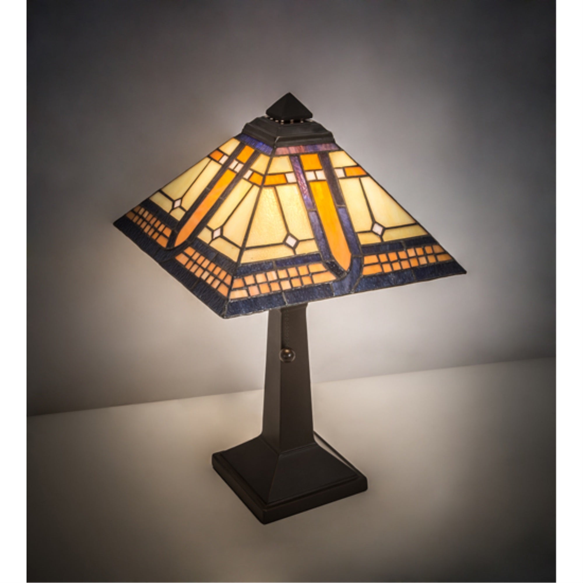 142879 16'H Sierra Prairie Mission Accent Lamp Manufacturer By Meyda. A Powerful Design Statement Fueled By Strong Lines And A Simple Geometric Design; This Lamp'S Art Glass Shade Features Beige And Honey Tones Accented With Multicolored Ripple Glass. Brilliant Stained Glass; An Appealing Mission Styled Shade And An Old World Base Finished In Mahogany Bronze Are Fashioned Into A Handsome Lamp. The Art Glass Shade Is Constructed Using Meyda Tiffany'S Famous Copperfoil Construction Process. Lens Color : Sunflower;Amber Glass (Not Mica);Chocolate;Beige, Made In China