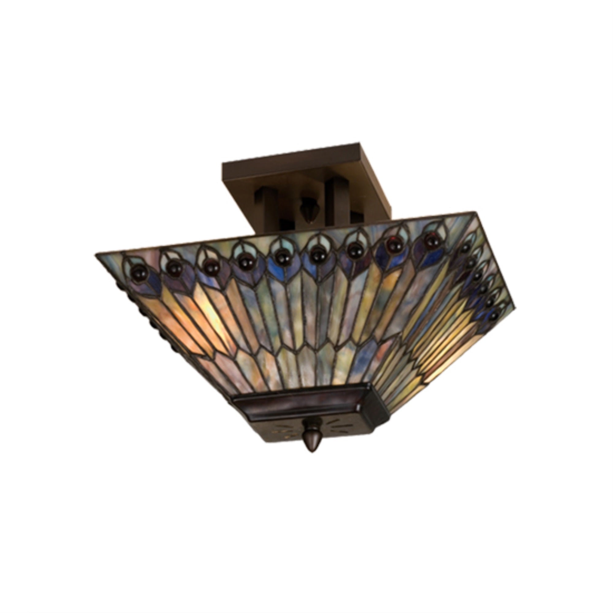 16'L Tiffany Jeweled Peacock Oblong Flushmount