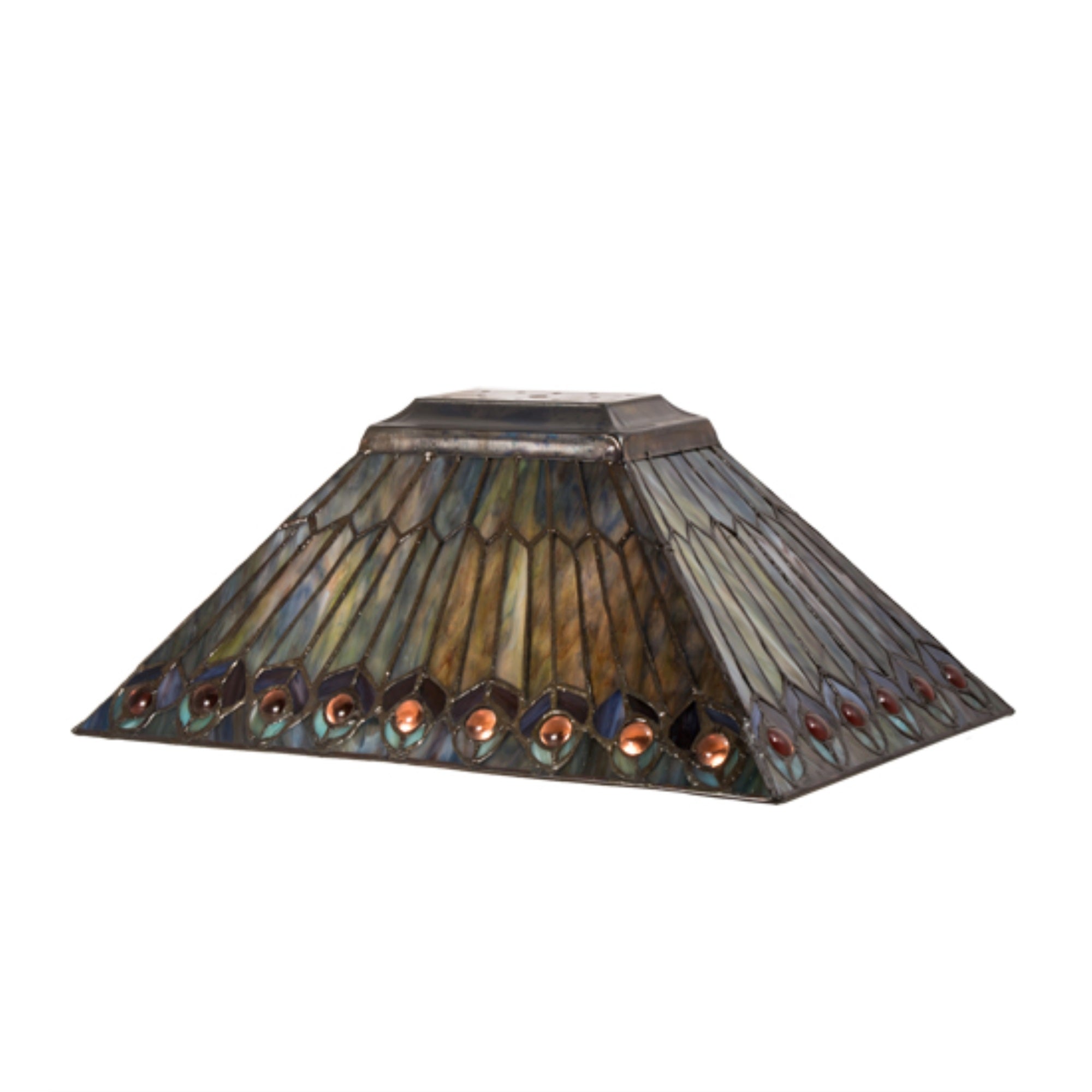 21099 16'L Tiffany Jeweled Peacock Oblong Shade Manufacturer By Meyda. As Distinctive As Beautiful Peacock Fanning Feathers In The Wild; No Two Shades Will Ever Be The Same As Their Individuality Can Be As Remarkably Unique As Their Personality. This Artistic Creation Utilizes Swirling Opalescent Art Glass Background Combinations Including Beige; Yellow Pinks; Golden Greens; Ivories; Bluish Whites; Turquoise Blues; Olive And Spring Greens. The Eye Of The Plumage Design Reveals Purples; Pastel Blues; Teals; Cobalt And Ivories; Accented With Blue And Purple Colored Jewels. Individual Pieces Of Glass Are Hand Cut And Wrapped Using Meyda Tiffany'S Famous Copperfoil Construction. Each Shade Is A Unique Work Of Art With Color Variations Based On Natural Ingredients Inherent In The Glass. Lens Color : Ruby;Sunflower;Amber Glass (Not Mica);Green;Blue;Violet, Made In China