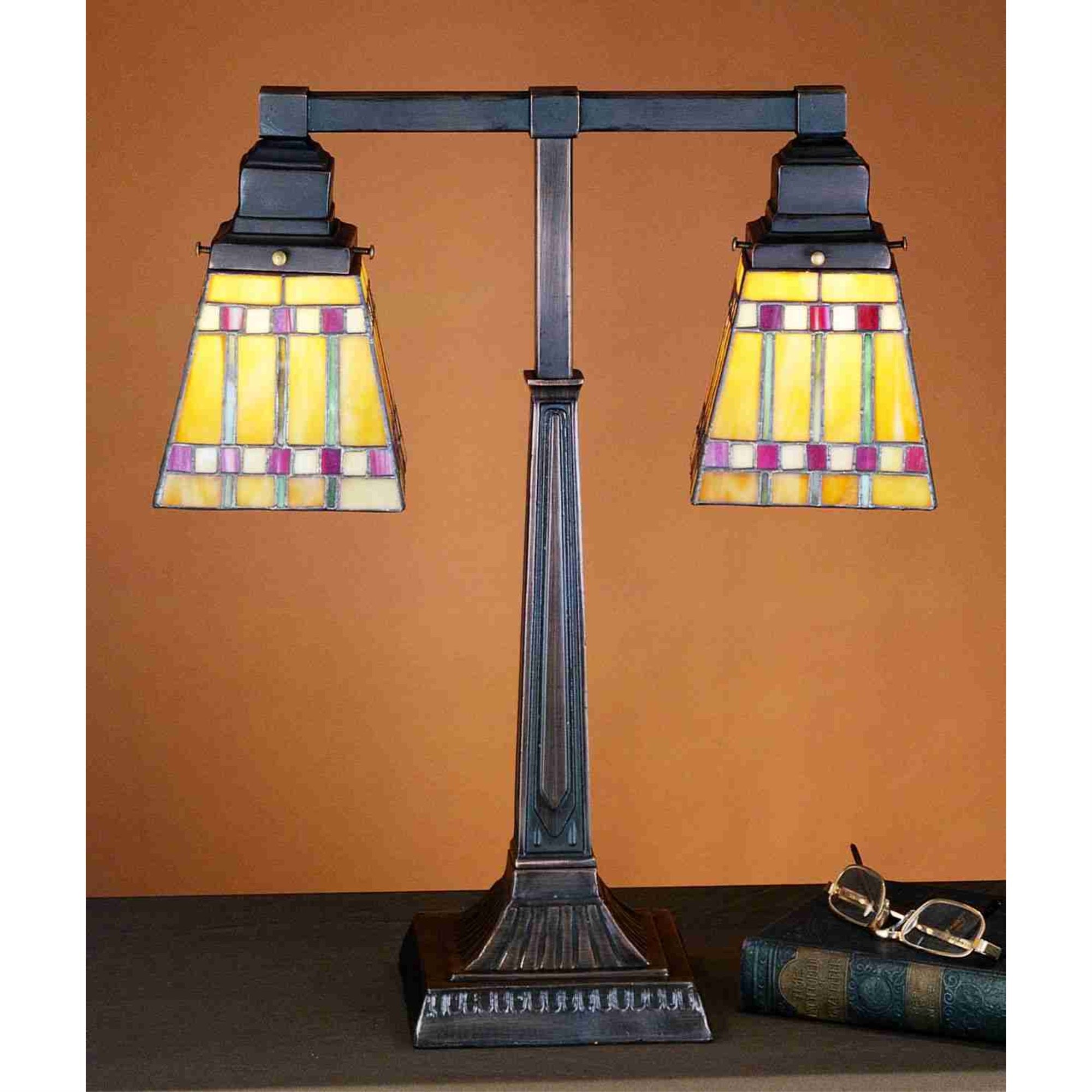 24286 19.5'H Prairie Corn 2 Arm Desk Lamp Manufacturer By Meyda. Every Meyda Tiffany Item Is A Unique Handcrafted Work Of Art. Natural Variations In The Wide Array Of Materials That We Use To Create Each Meyda Product Make Every Item A Masterpiece Of Its Own. Photographs Are A General Representation Of The Product. Colors And Designs Will Vary. Lens Color : Ruby;Coral;Sunflower;Amber Glass (Not Mica);Green;Chocolate;Beige;White, Made In China