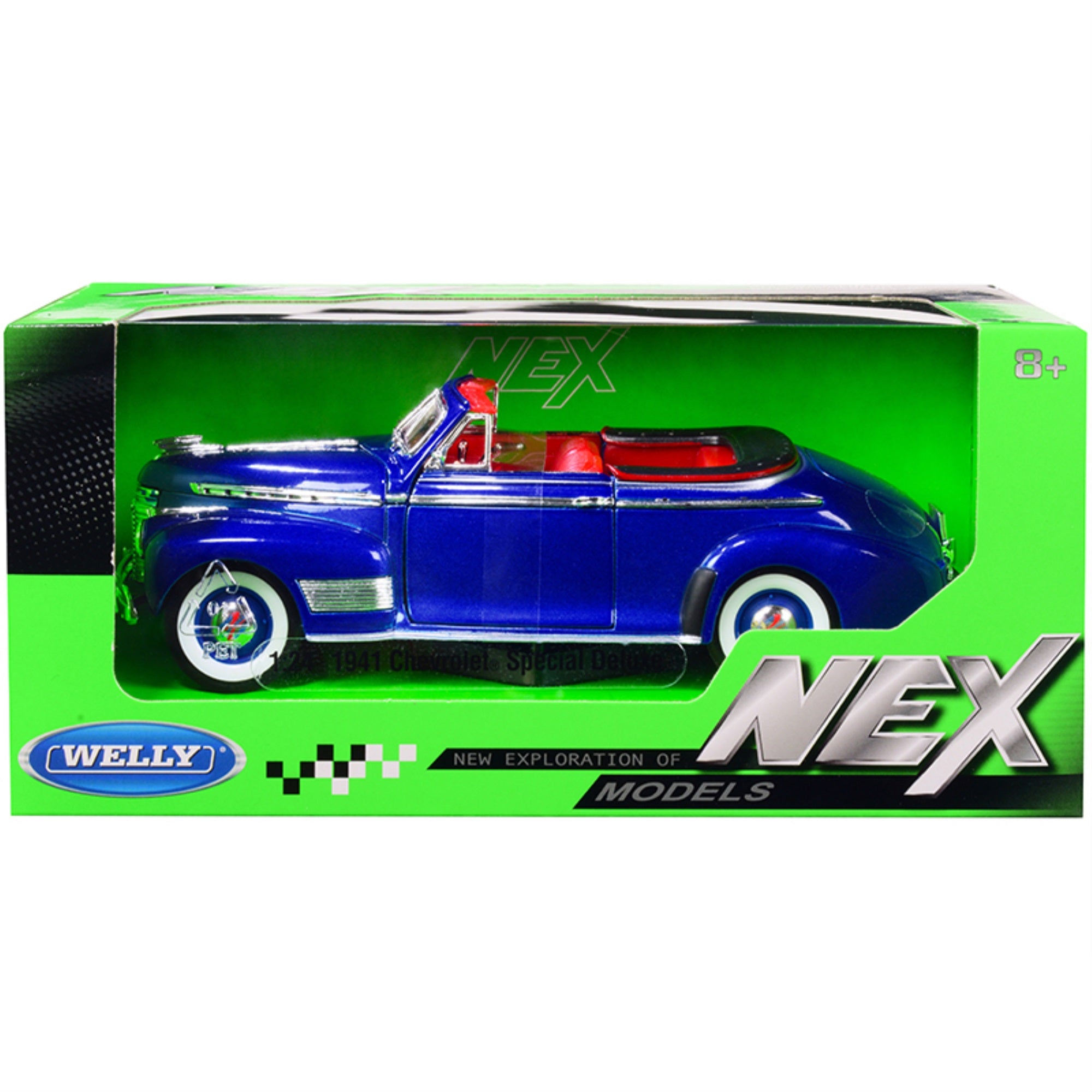 1941 Chevrolet Special Deluxe Convertible Blue Metallic With Red Interior 'Nex Models' 1/24 Diecast Model Car By Welly