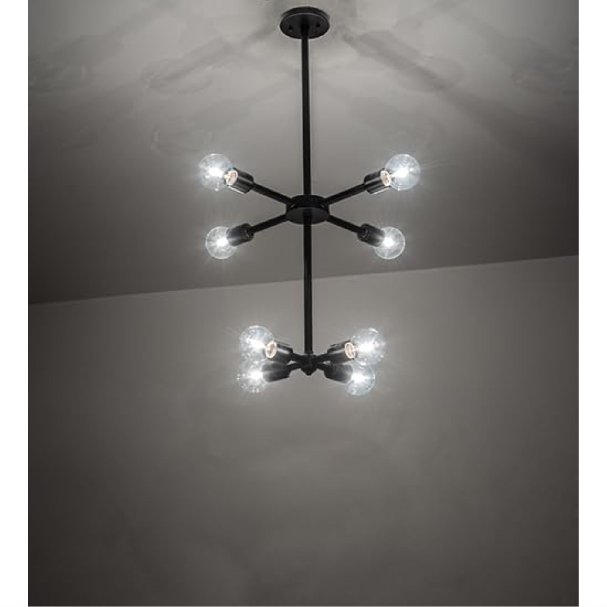 A Striking Geometric Lighting Design. Pronograde Is A Two-Tiered Architectural Structure That Features Two Crossbars With Multiple Arms Embracing Eight Edison-Styled Lamps For A Unique Decorative Look. The Frame And Hardware Are Finished In Textured Black. This Handsome Ceiling Fixture Is Perfect For Modern Homes; Offices; And Labs; From Collierville; Tennessee; To North Wales; Pennsylvania; To San Diego; California. The Pronograde Jack 8 Light Chandelier Is Featured In Our American-Made; American-Designed; Handcrafted Industrial Lighting Collection And Manufactured In Yorkville; New York. The Fixture Is Ul And Cul Listed For Dry And Damp Locations.