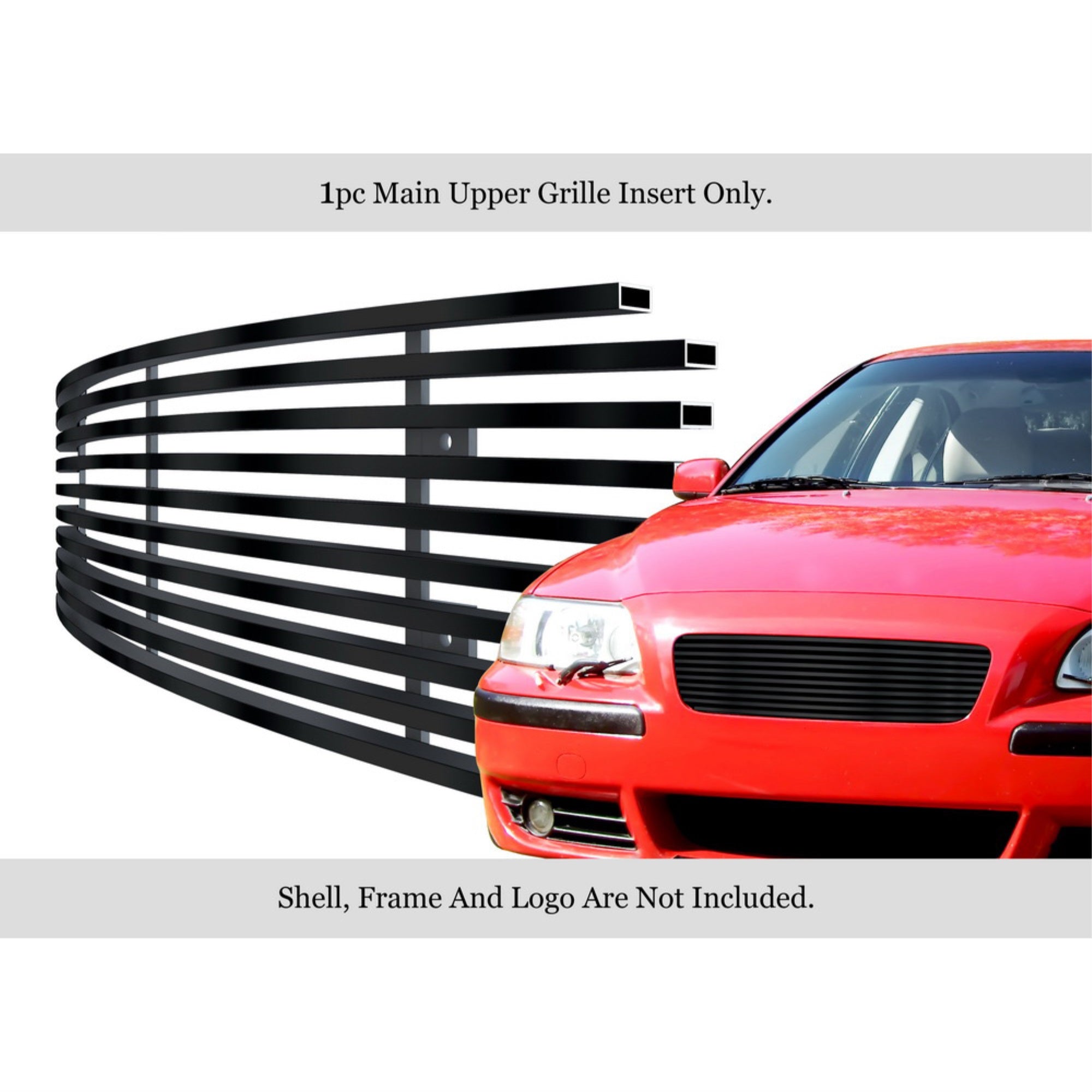 2001-2004 Volvo S60 Not For S60 R Trim Stainless Steel Black Powder Coated Finish Horizontal Billet Black Stainless Steel Billet Grille