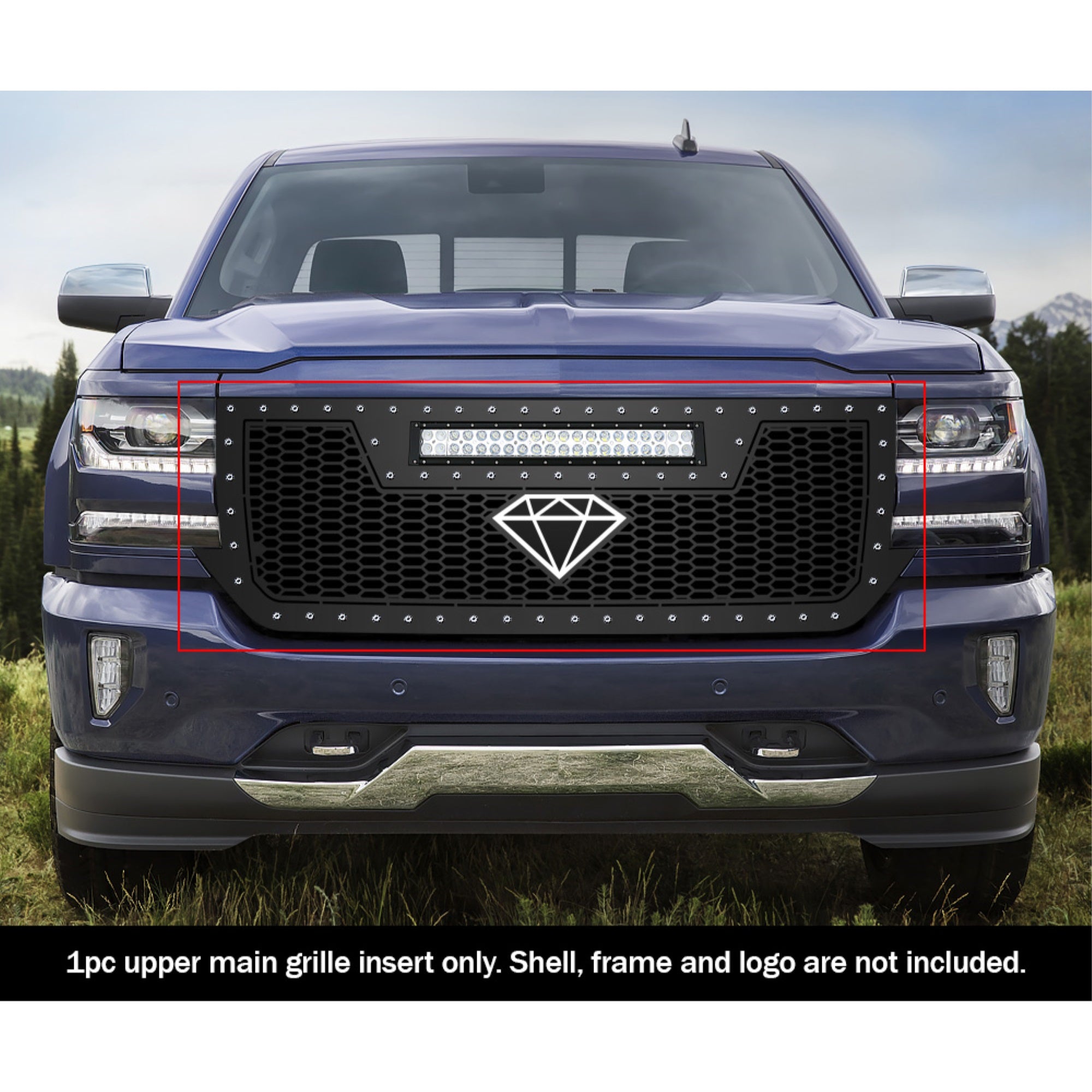 2016-2018 Chevy Silverado 1500 /2019 Chevy Silverado 1500 Ld Stainless Steel Black Powder Coated Finish Laser Cut Mesh With 20' Led Sheet Grille