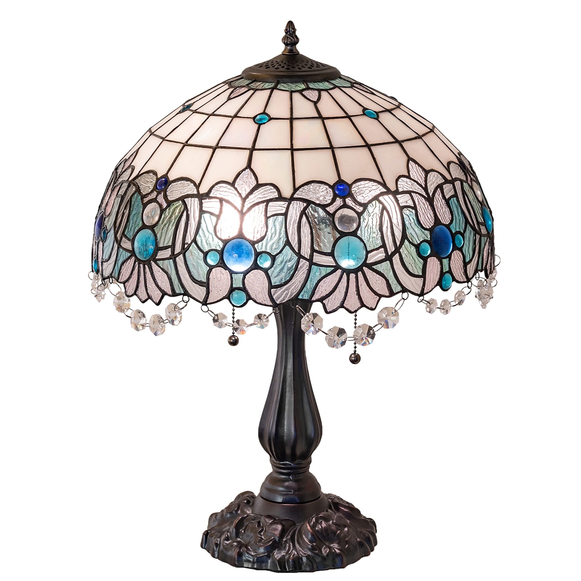 Oceanic Iridescent Blue Jewels; Surrounded By Clear And Blue Angel Style Motifs; Highlight This Intricate Art Nouveau Motif On A White Art Glass Background. The Shade Is Created Using The Famous Meyda Tiffany Copperfoil Construction Process And Complemented With Crystal Beaded Garland. The Table Lamp Is Enhanced With A Base Finished In Mahogany Bronze.The Angelica Table Lamp Is Included In Our American-Designed; Handcrafted Art Nouveau Stained Glass Lighting Collection. Ul And Cul Listed For Dry Locations. Each Shade Is A Unique Work Of Art With Color Variations Based On Natural Ingredients Inherent In The Glass. Please Contactus If Color Matching Is Critical When Ordering Multiple Items.