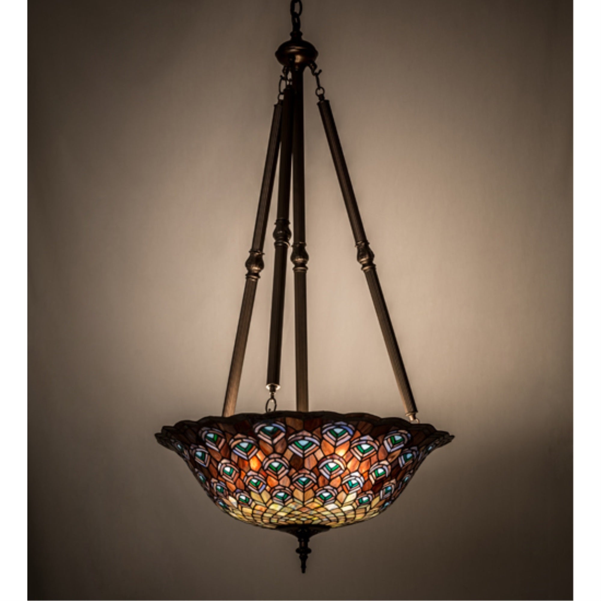 24'W Tiffany Peacock Feather Inverted Pendant