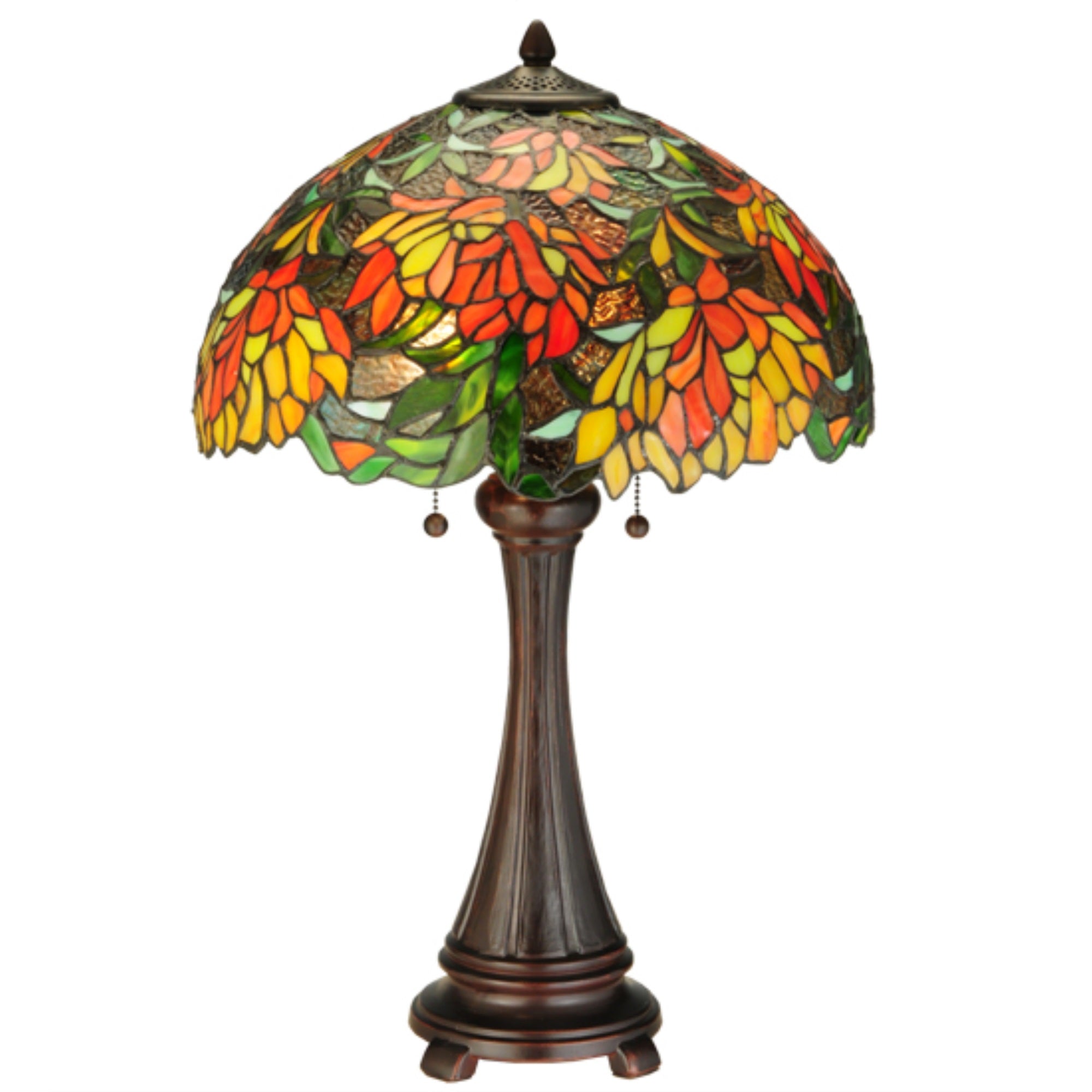 138122 25'H Lamella Table Lamp Manufacturer By Meyda. In All Its Natural Beauty; A Bouquet Of Blossoming Flowers In Peach; Tangerine And Yellow Hues Bloom While Surrounded By Radiant Willow Green Leaves And Glistening Multicolored Rippled Glass. This Lamp Is So Beautiful That You Will Think You Are Sitting In An English Garden. This Stunning Tiffany Styled Stained Glass Shade; With A Coordinating Base In A Warm Mahogany Bronze Finish; Will Add A Brilliant; Luxurious Elegance To Your Home. Lens Color : Coral;Sunflower;Green;Blue;Violet;White, Made In China