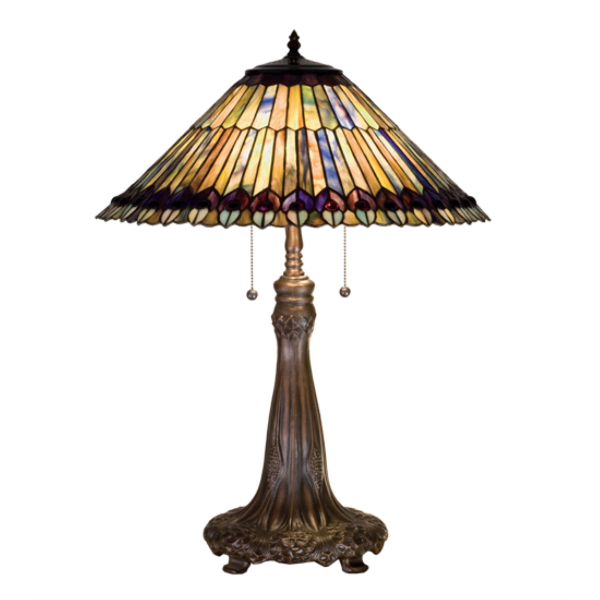 27'H Tiffany Jeweled Peacock Table Lamp.602