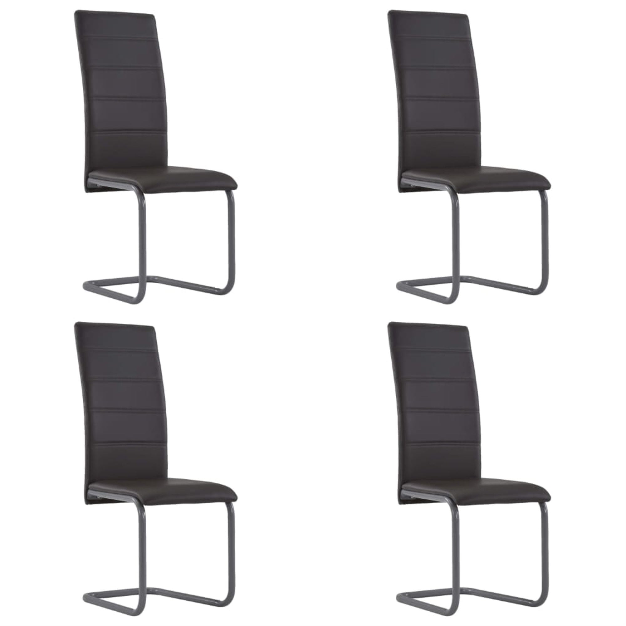 282096 Vidaxl Cantilever Dining Chairs 4 Pcs Brown Faux Leather