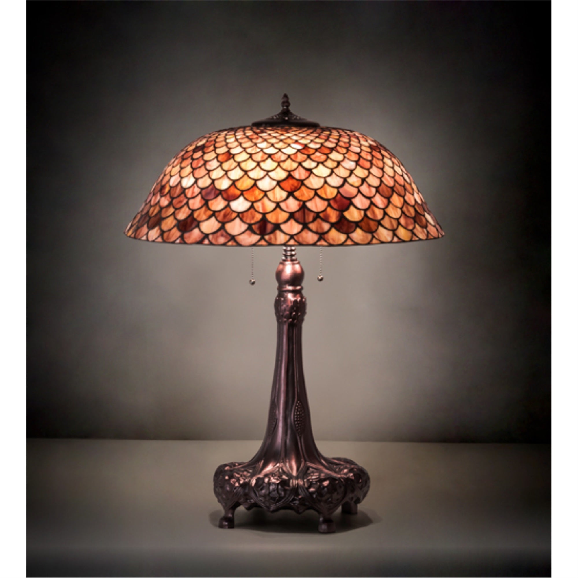 230408 31' High Fishscale Table Lamp Manufacturer By Meyda. Every Meyda Tiffany Item Is A Unique Handcrafted Work Of Art. Natural Variations In The Wide Array Of Materials That We Use To Create Each Meyda Product Make Every Item A Masterpiece Of Its Own. Photographs Are A General Representation Of The Product. Colors And Designs Will Vary. Lens Color : Ruby;Coral;Chocolate, Made In China