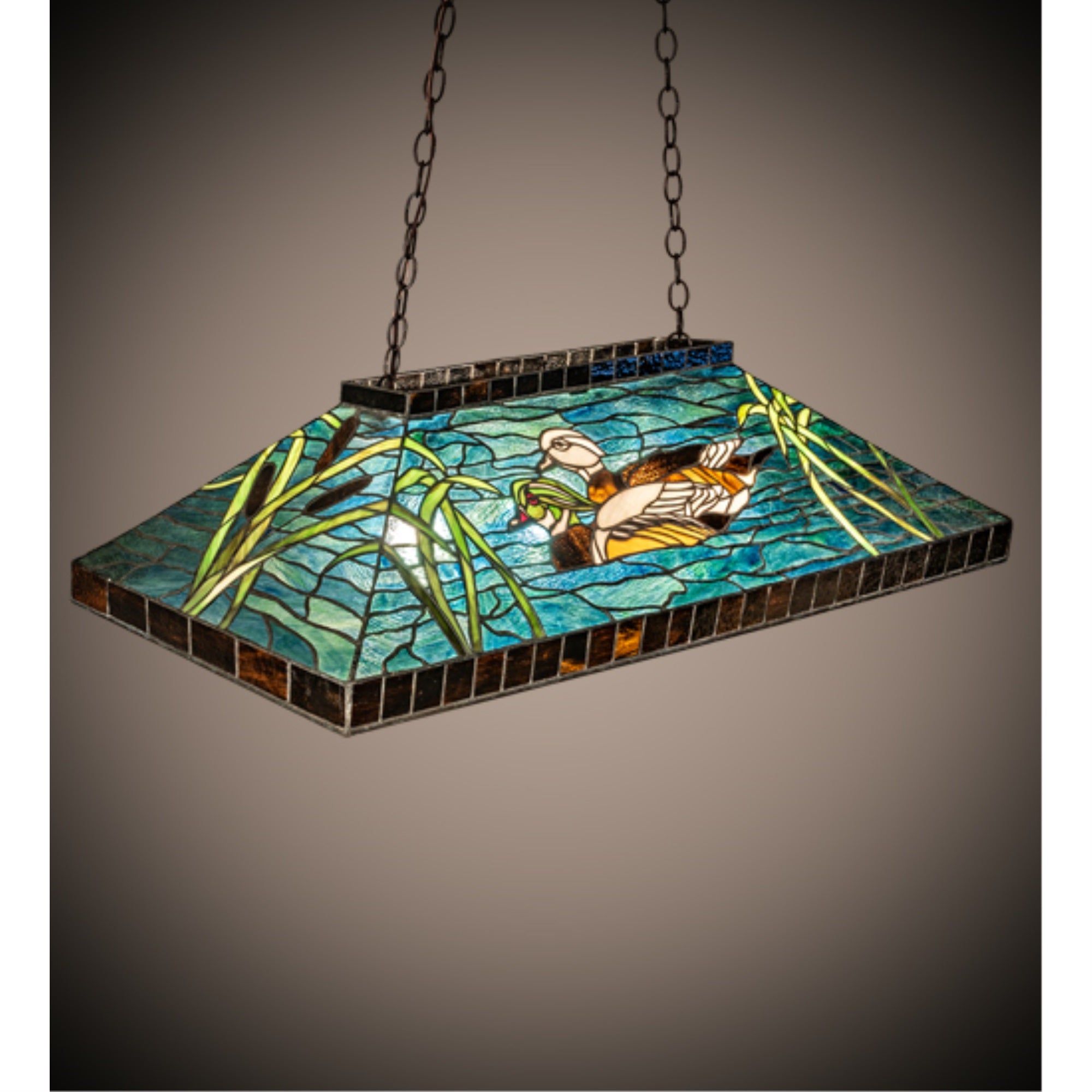 17249 39' Long Wood Ducks Oblong Pendant China. The Material Is Steel And Glass. The Finish Is Mahogany Bronze. The Shade Is Stained Glass.
