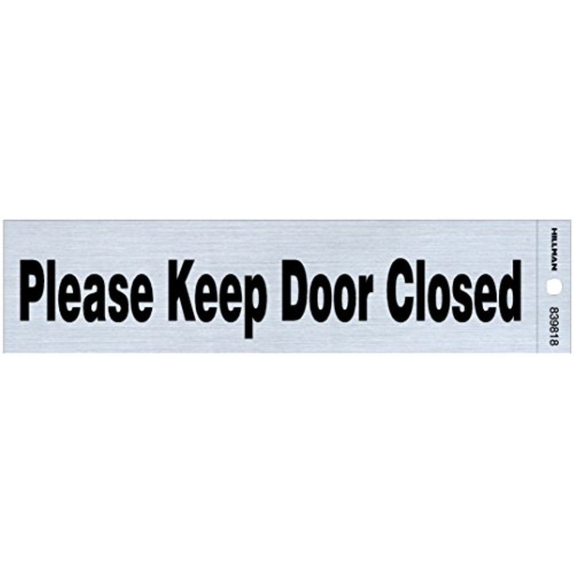 Hillman 839818 Please Keep Door Closed Self-Adhesive Sign (2 X 8) Product Description Please Keep Door Closed Sign Helps Ensure Safety And Privacy By Politely Indicating Certain Doors To Remain Closed. The Bright Bold Black Text Is Easily Legible, And Sends The Message Across Clearly. The Sign Has Please Keep Door Closed Text In Bold Black Against A Brushed Nickel Background. It Should Be Placed Horizontally On The Main Entrance Door Where It Can Easily Be Seen. It Is Made Using Mylar, A Material Made By Dupont. Mylar Is An Extremely Durable Material That Is Flexible And Resistant To Wear And Tear. It Can Withstand Most Environments, And Will Not Fade In High Temperatures. The Ultra-Violet Fluorescent Ink Used Ensures Maximum Visibility From Different Viewing Angles. Installation: The Self-Adhesive Pressure Sensitive Backing Firmly Attaches Instantly To Most Smooth And Flat Surfaces Without Requiring Any Tools. To Install, Ensure The Surface Where The Sign Is Being Installed Is Clean And Dry. Peel Off The Back Cover To Reveal The Self-Adhesive Backing. Press And Hold The Adhesive Side Firmly Against The Surface Being Installed On For A Few Seconds. Suitable For Commercial And Residential Use. About The Hillman Group: The Hillman Group Is A Renowned Brand Leader For Home Hardware And Home Improvement Products. It Was Started In 1964 As A Fastener Company, Growing To Well Over 130,000 Sku'S Since. Hillman Focuses On Providing Quality, Service And Innovation. Made In Usa. This Item Is Sold Individually As A Single Pack, 1-Sign. From The Manufacturer The Black And Nickel Mylar Sign Is Flexible And Exceptionally Durable. It Has A High Tensile And Tear Strength And Will Not Fade In High Tempetures Please Keep Door Closed Sign Helps Ensure Safety And Privacy By Politely Indicating Certain Doors To Remain Closed. Hillman Please Keep Door Closed Self-Adhesive Sign Has Please Keep Door Closed Text In Bold Black Against A Brushed Nickel Background. , Sign Made Of Ultra-Violet Fluorescent Ink For Maximum Visibility From A Distance. Measures 2 X 8 Inches. , Made Using High Quality Mylar, A Material Made By Dupont. Mylar Is Extremely Durable, Flexible, And Tear Resistant. Withstands Most Environments, And Will Not Fade In Extreme Temperatures. , Self-Adhesive Backing For Easy Installation. Sticks Effortlessly To Most Smooth, Flat Surfaces. , Made In Usa. This Item Is Sold Individually As A Single Pack, 1-Sign.