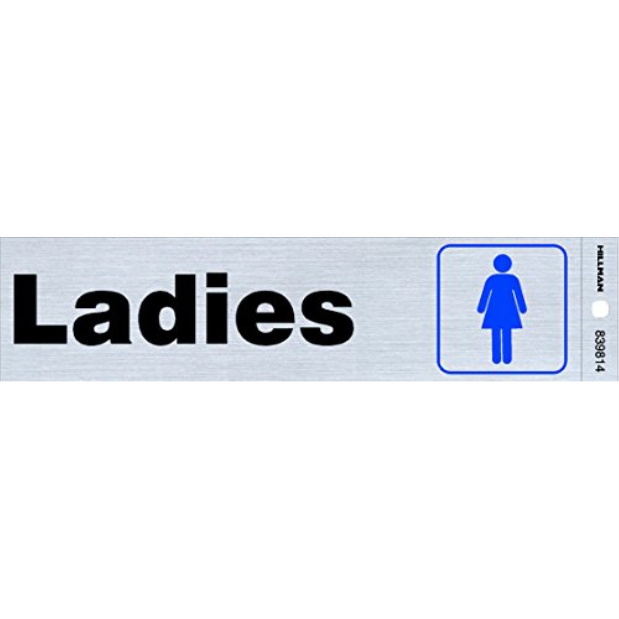 Hillman 839814 Self-Adhesive Ladies Restroom Sign (2 X 8) Product Description Ensure That The Restrooms Are Easy To Find With These Durable Signs. Displaying Clear Signs In Your Business Help Both Customers And Employees. This Sign Is Sure To Convey Your Message Clearly And Efficiently. From The Manufacturer The Black And Blue Mylar Sign Is Flexible And Exceptionally Durable. It Has A High Tensile And Tear Strength And Will Not Fade In High Tempetures Ladies Restroom Sign Clearly Identifies The Women?S Bathrooms, Restrooms Or Washrooms. Hillman Ladies Self-Adhesive Sign Has Ladies Text In Bold Black, And A Female Figure In Bright Blue Against A Brushed Nickel Background. , Sign Made Of Ultra-Violet Fluorescent Ink For Maximum Visibility From A Distance. Measures 2 X 8 Inches. , Made Using High Quality Mylar, A Material Made By Dupont. Mylar Is Extremely Durable, Flexible, And Tear Resistant. Withstands Most Environments, And Will Not Fade In Extreme Temperatures. , Self-Adhesive Backing For Easy Installation. Sticks Effortlessly To Most Smooth, Flat Surfaces. , Made In Usa. This Item Is Sold Individually As A Single Pack, 1-Sign.