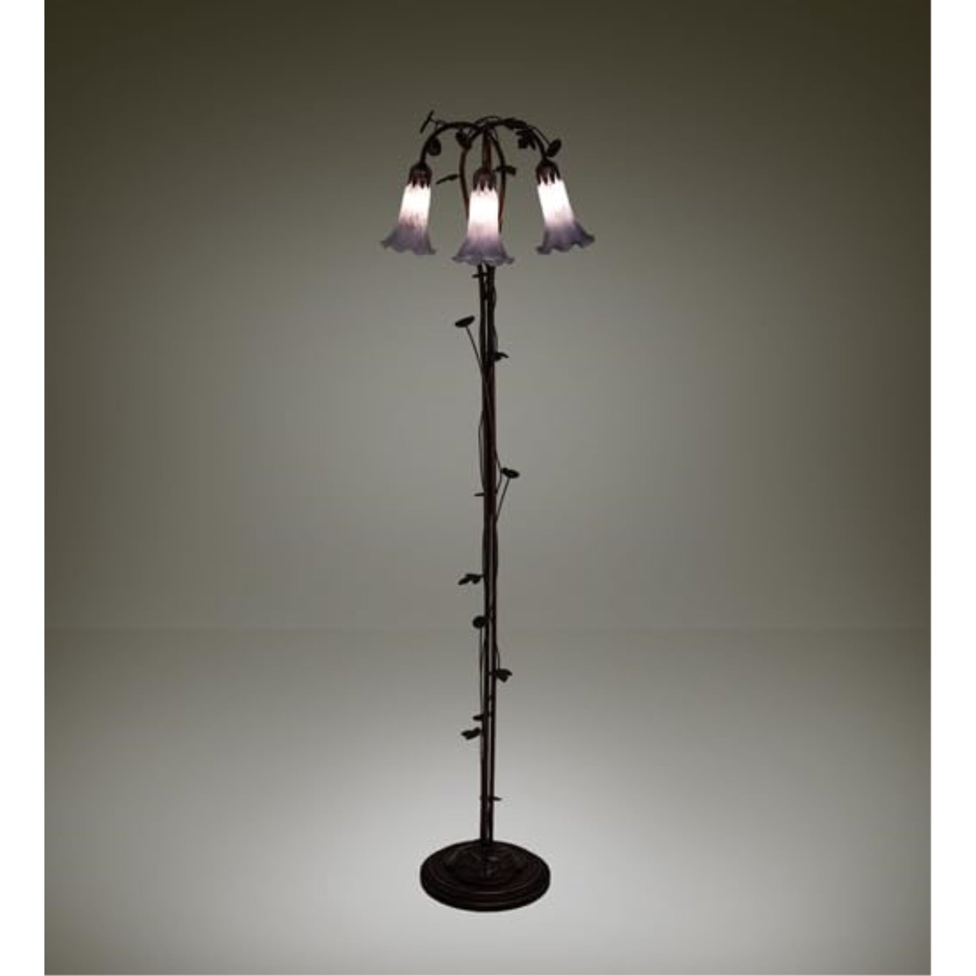 Inspired By The Popular Tiffany Design From The Early 1900S... This Floor Lamp Offers An Attractive; Delicate Design Featuring Three Stunning Shades Mouth Blown Of Fine Grey Favrile Style Art Glass. The Pond Lily Shades Are Embraced By An Elegant Cast Metal Floor Base With Floral And Vine Accents That Are Finished By Hand In Mahogany Bronze. The Pond Lily Floor Lamp Is Featured In Our American Designed; Handcrafted Favrile Glass Lighting Collection. Ul And Cul Listed For Dry Locations. Each Shade Is A Unique Work Of Art With Color Variations Based On Natural Ingredients Inherent In The Glass. Contact Us If Color Matching Is Critical When Ordering Multiple Items.