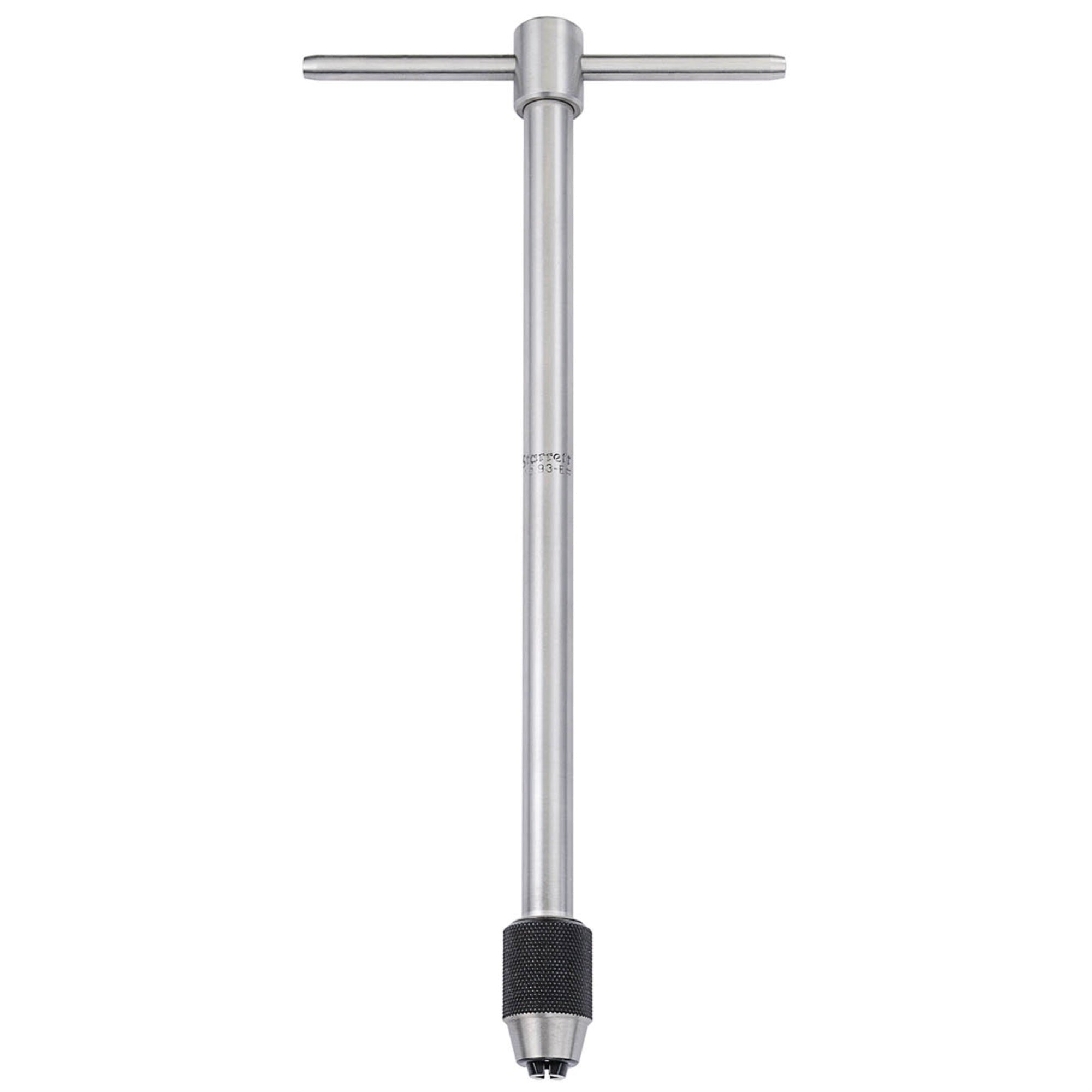 The Starrett 93 T-Handle Tap Wrench Is For Holding Taps, Drills, Reamers And Other Small Tools To Be Turned By Hand. It Is Properly Heat Treated To Withstand Ordinary Shop Use. The Jaw Conforms To The Tool Being Held, Making It Rigid And Less Apt To Loosen. The Wrench Has A Sliding Handle That Is Frictionally Held. This Feature Permits The Handle To Be Removed Entirely Or Positioned So That Leverage Can Be Applied When Working In Close Quarters. 250Mm (10) Length, 5.5-11Mm (7/32-7/16) Tap Size.
