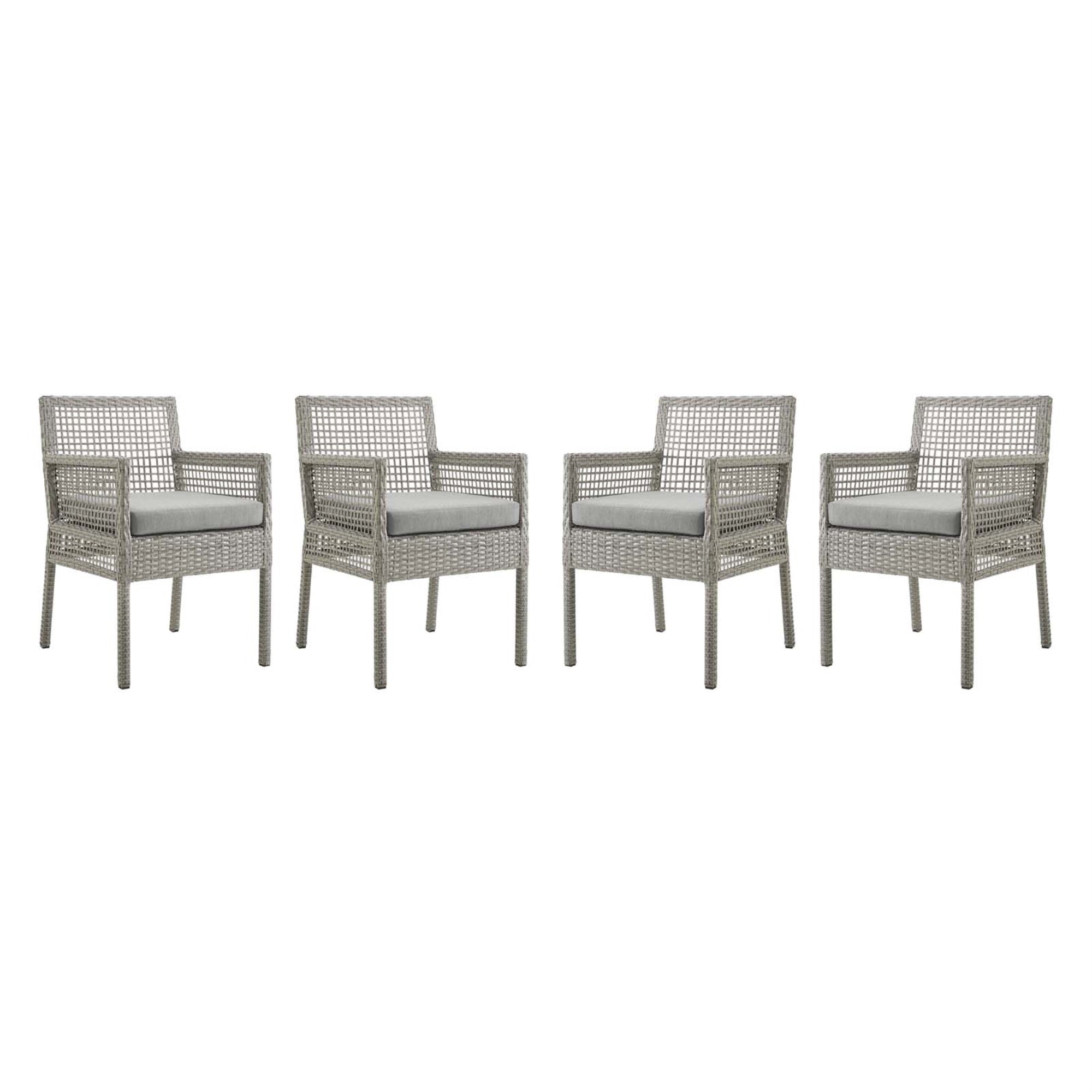 Aura Outdoor Patio Dining Arm Chair Set Of 4 - Gray Wicker Rattan, Aluminum Frame, All-Weather Cushion, Non-Marking Foot Caps