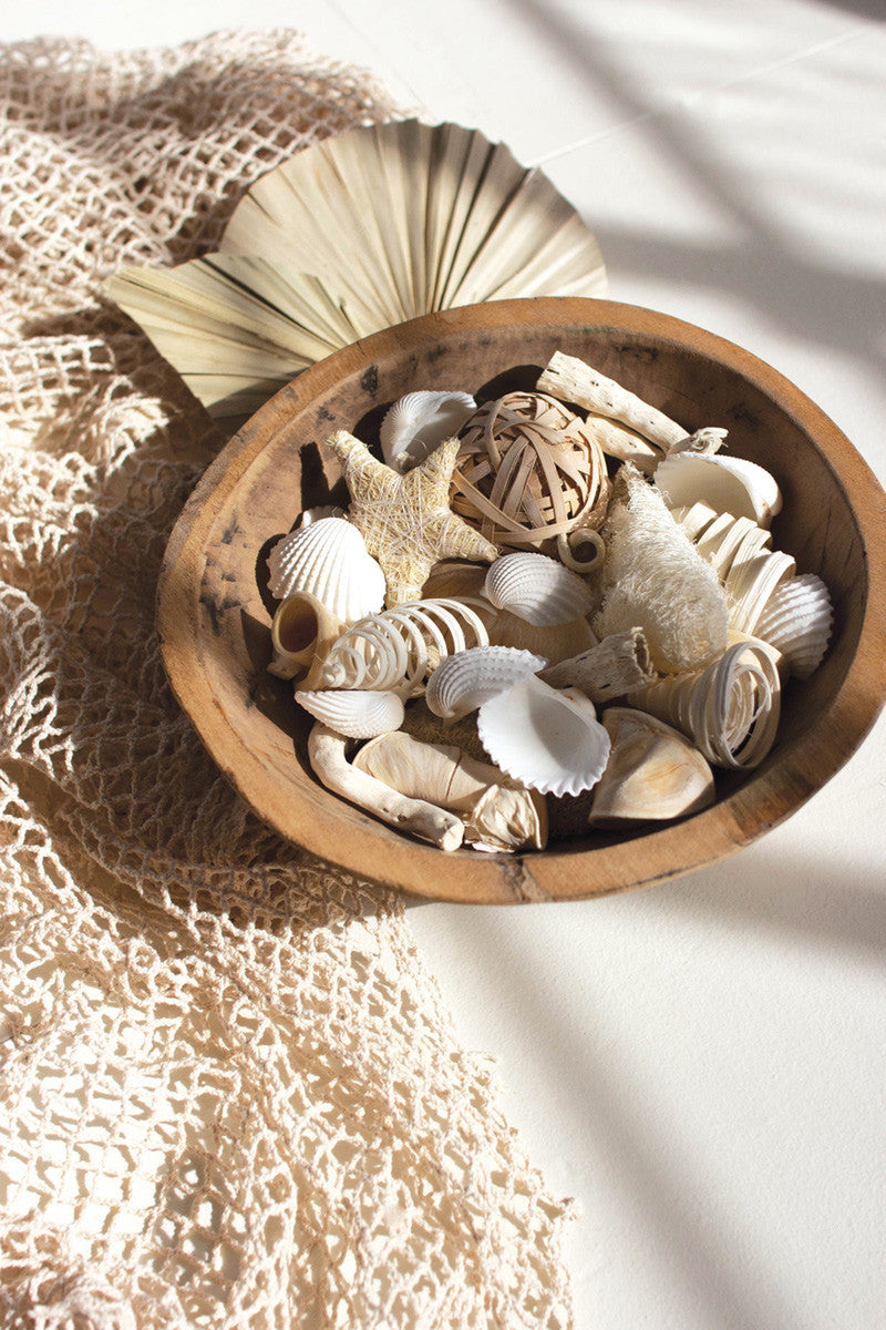 Seaside Shells And Treasures Make Up This Coastal Filler Collection. Use For Empty Vases Or Bowls Around Your Home. Conveniently Packaged In A Polyester Bag So You Can Fill And Go, This Filler Is Perfect For That Beachy Bathroom Or Coastal Cabin.