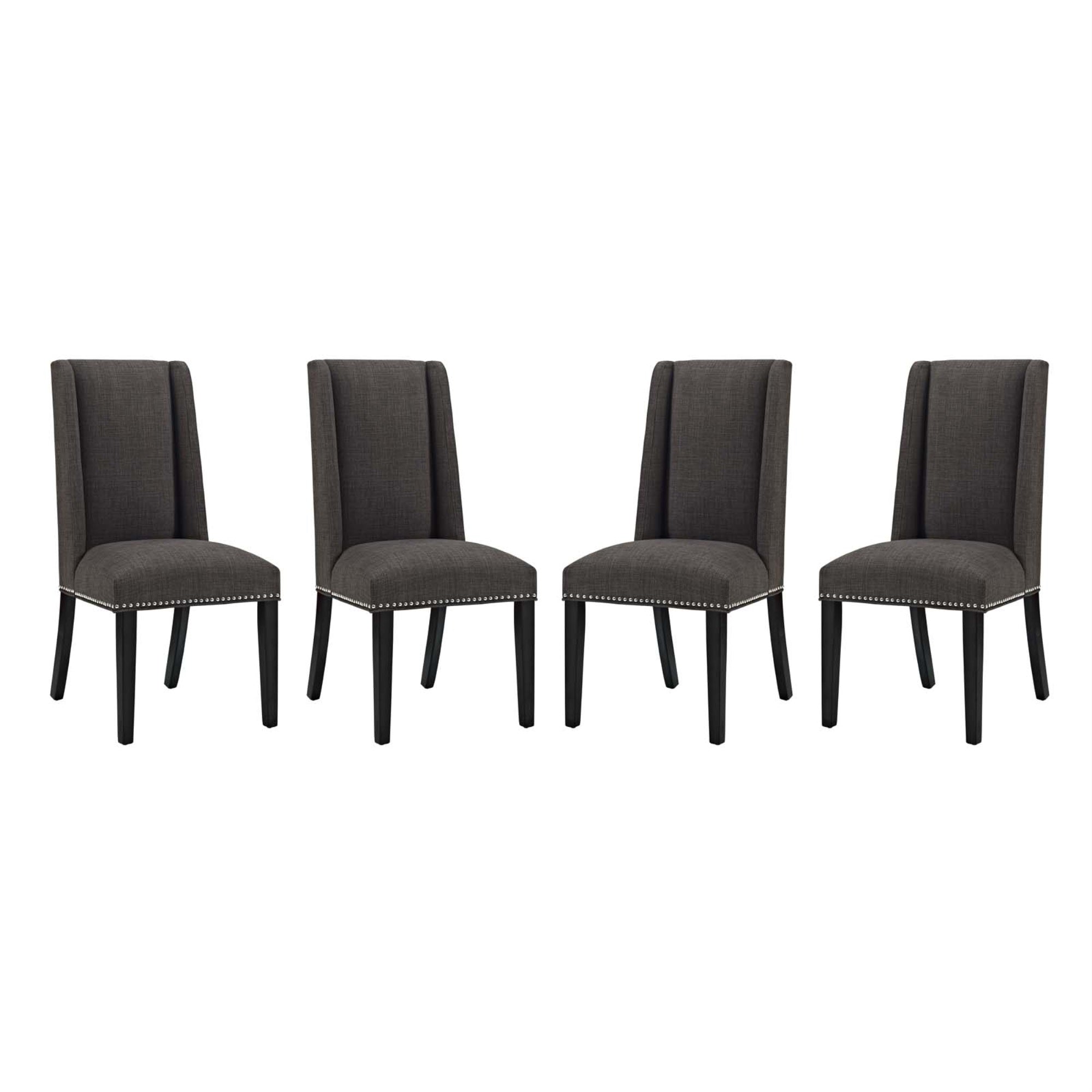 Discover The Abundant Wealth Of A Cherished Legacy With The Baron Dining Chair. Crafted To Exude Sophistication, The Barons Showcases An Enchanting Backrest And A Seat Adorned With Polished Nailhead Trim, Exuding Grace And Regal Allure. Boasting Plush Foam Padding, Exquisite Fabric Upholstery, A Sturdy Wooden Frame And Legs Equipped With Non-Marking Foot Glides, The Baron Is A Chic Dining Chair That Seamlessly Complements Any Contemporary Household. This Set Includes Four Baron Dining Chairs, Ensuring Ample Seating For Your Modern Home.