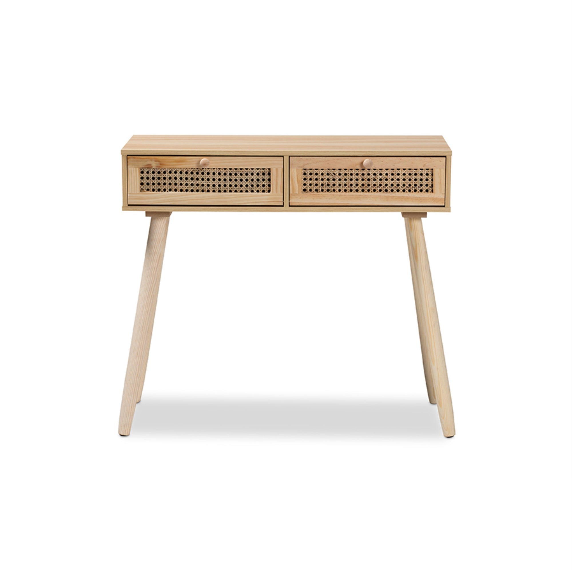 Baxton Studio Maclean Mid-Century Modern Rattan And Natural Brown Finished Wood 2-Drawer Console Table