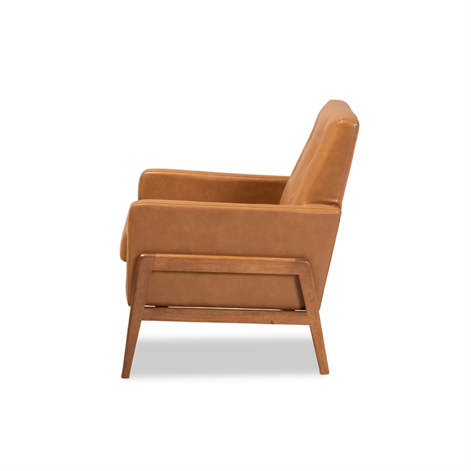 Baxton Studio Perris Mid-Century Modern Tan Faux Leather Upholstered And Walnut Brown Finished Wood Lounge Chair