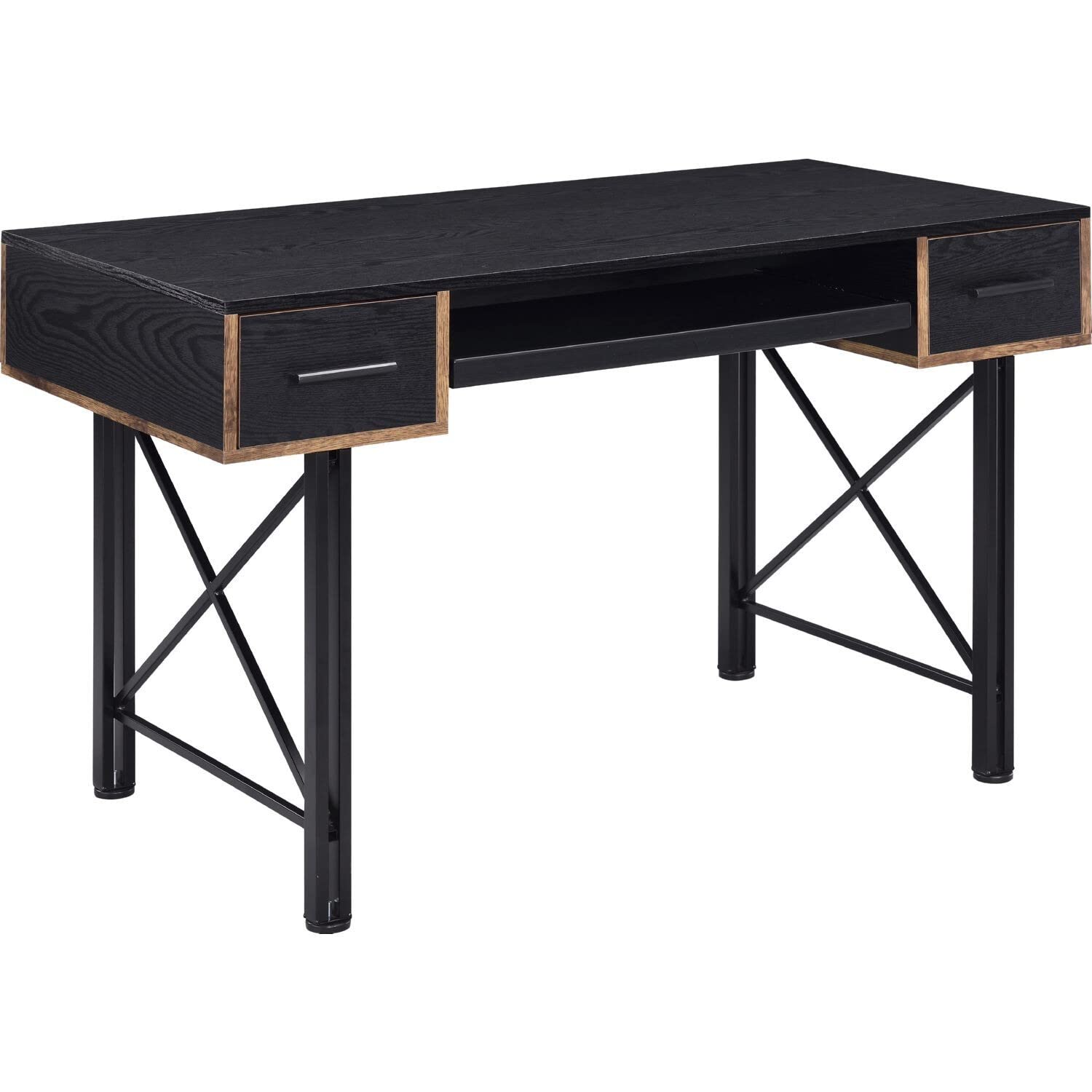 Benjara Bm250324 Computer Desk With 2 Drawers & Keyboard Tray Brown & Black