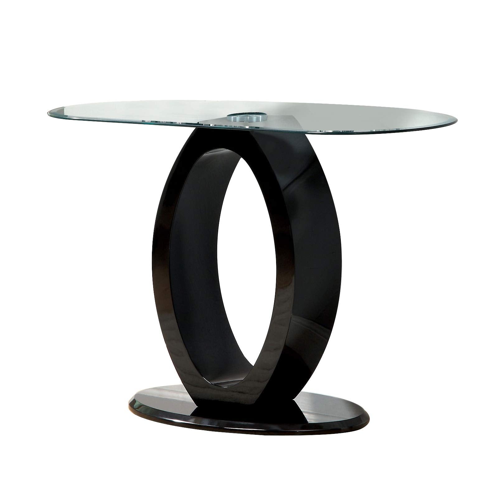 Benjara Contemporary Tempered Glass Top Sofa Table With O Shape Base, Black