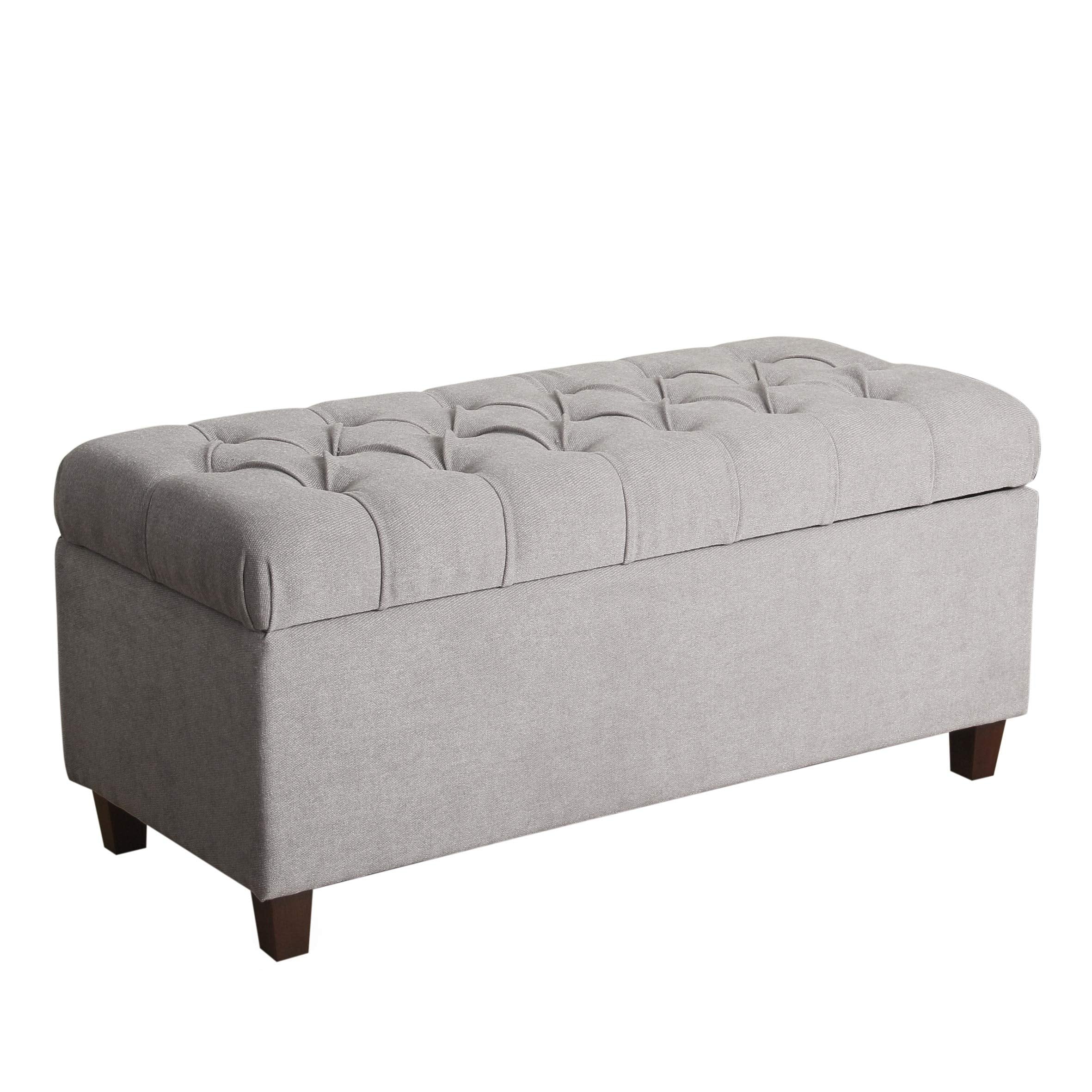 Descriptiona Deliberately Designed Upholstered Bench Will Add A Flair Of Style And Contemporary Storage To Hide Extra Commodities In Your Living Room Constructed From Plywood And Wood With Soft Textured Light Gray Color Polyester Fabric Upholstery, This Bench Features Hinged Lid Storage And Button Tufted Detailing, Giving It A Unified Design Use It As An Entryway Bench, Bedroom Bench Or You Can Also Place It In Your Home Office To Offer Extra Seating Tapered Wooden Feet In Dark Walnut Brown Finish, Giving Greatest Support And Sturdiness To Its Design