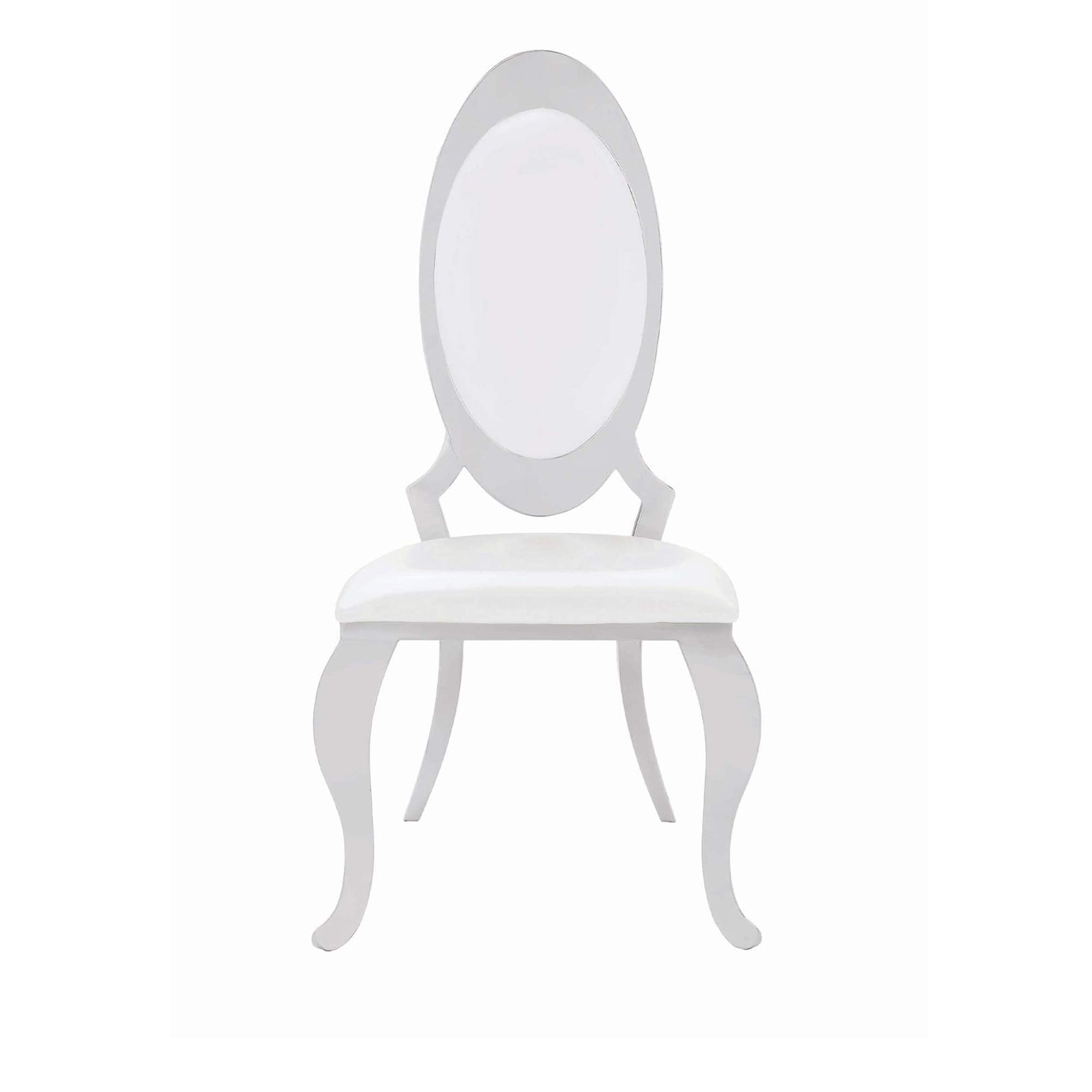 This Transitional Style Dining Chair Has White Leatherette Upholstered Back And Seat That Confers Comfort To This Chair It Also Sports Cabriole Style Front Leg And Flared Back Legs That Impart A Unique Character To The Design Of This Chair