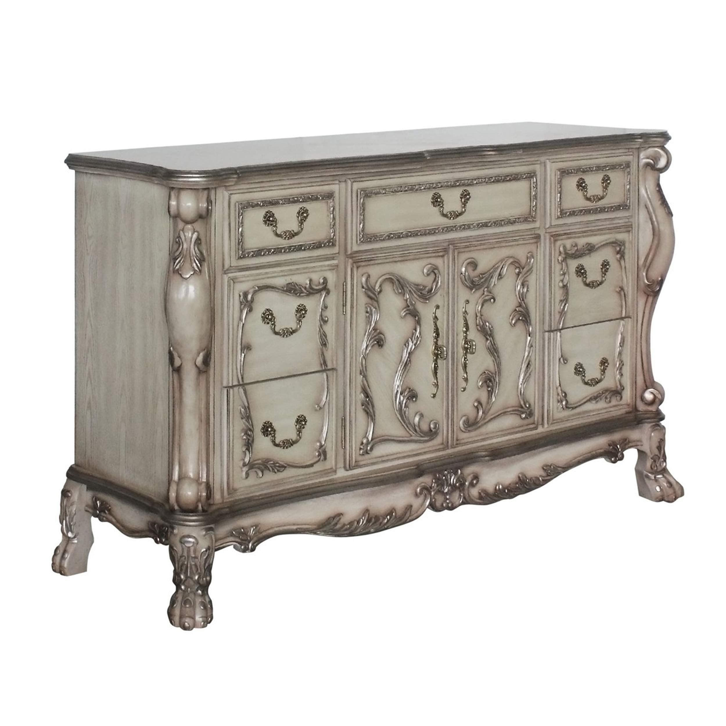 Combine Storage And Elegance At Your Home With The Inclusion Of This Traditional Style Dresser Constructed From Solid Wood In An Antique White Finish, It Features 7 Drawers And 2 Cabinets With Antique Metal Handles, Showcasing Stylish Carved Details It Is Supported By Claw Feet, Providing Stability And Adding To Its Look