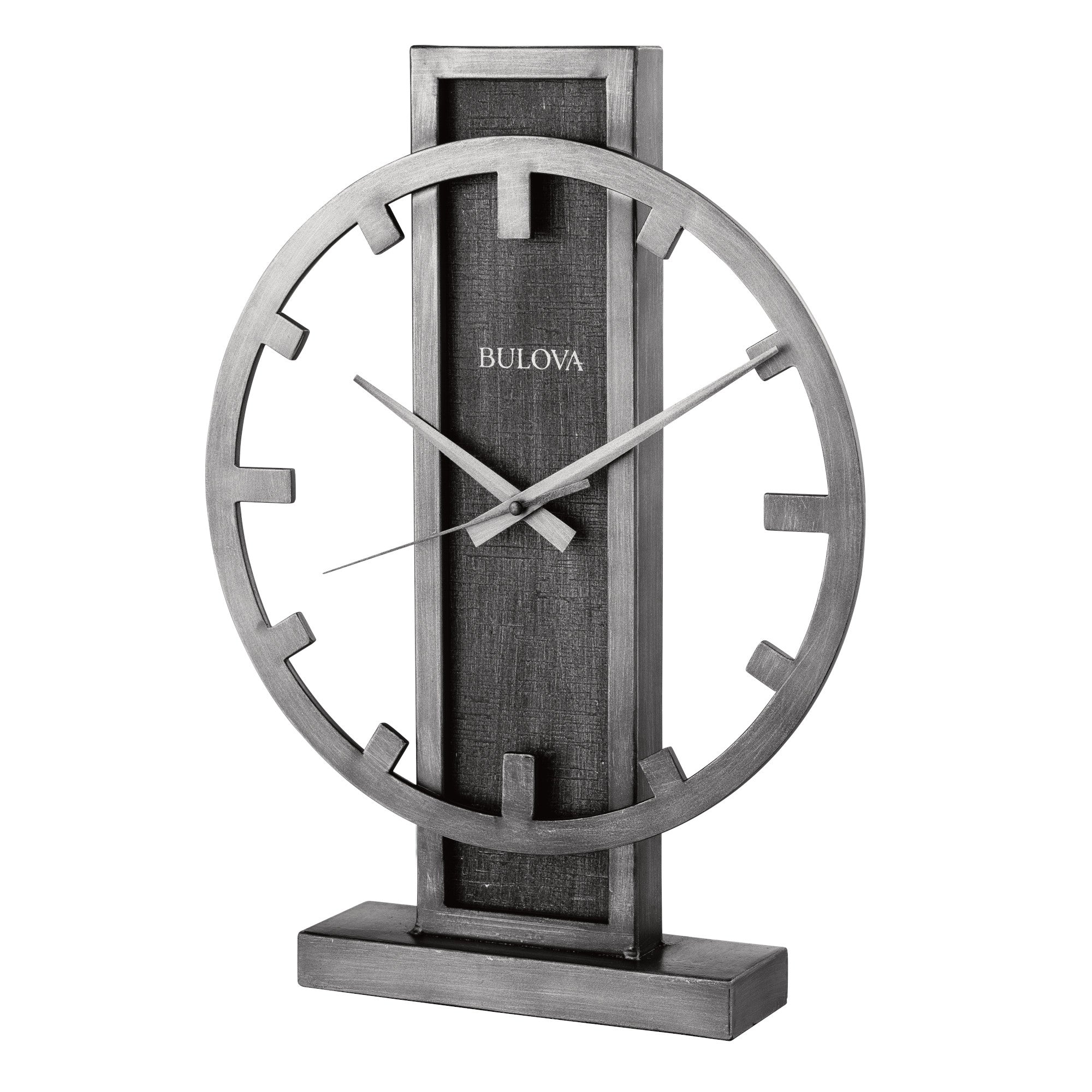 New B1864 Silver Streak Sculptural Flair To This Contemporary Tabletop Design With Aged Silver-Tone Metal Case. Silent-Sweep (No Ticking) Second Hand Glides Smoothly Around The Hand-Cut Open Dial. Requires (1) Aa Battery, Not Included. H: 16 W: 12 D: 2 5/8. H 40.6 Cm X W 30.4 Cm X D 6.5 Cm