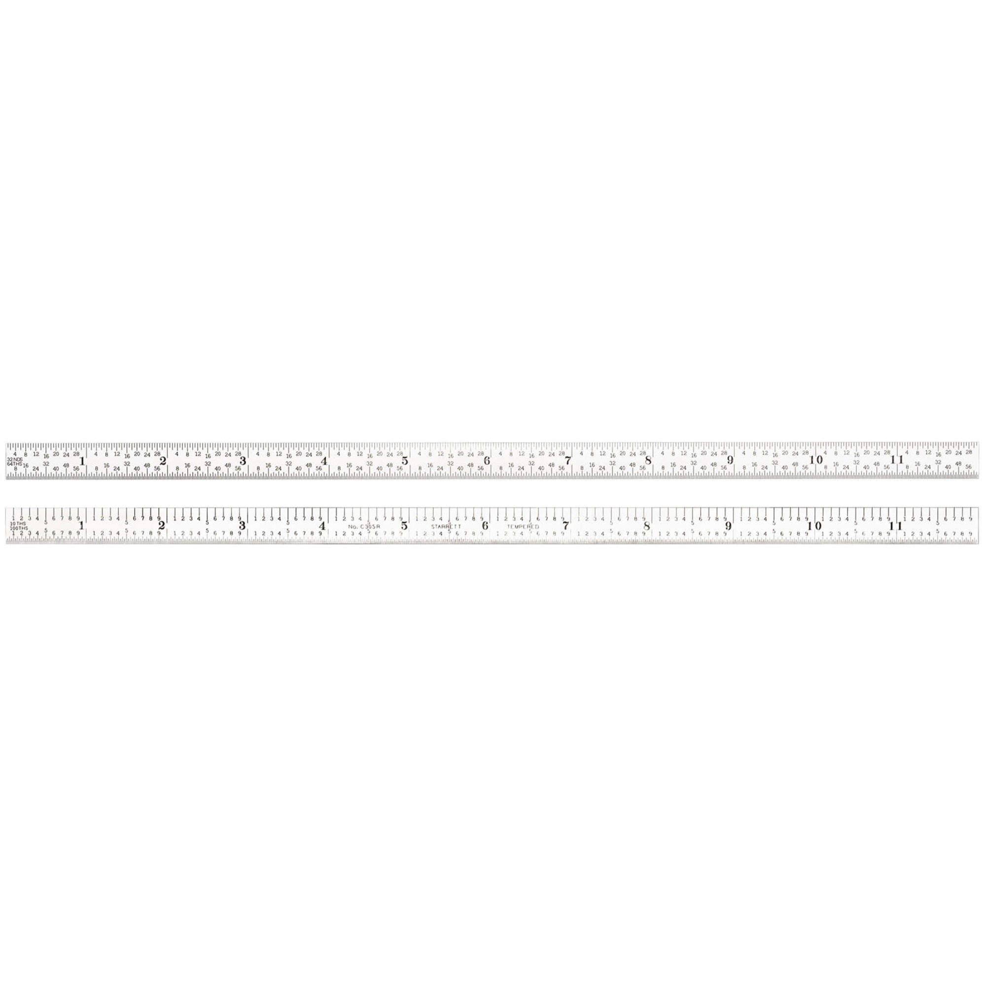 The Starrett 12' Full-Flexible Steel Rule With Inch Graduation Features A Satin Chrome Finish. Graduations At Quick-Reading 10Ths, Aircraft Quick-Reading 100Ths, 32Nds And 64Ths. 12, 5R Grad, Full-Flexible