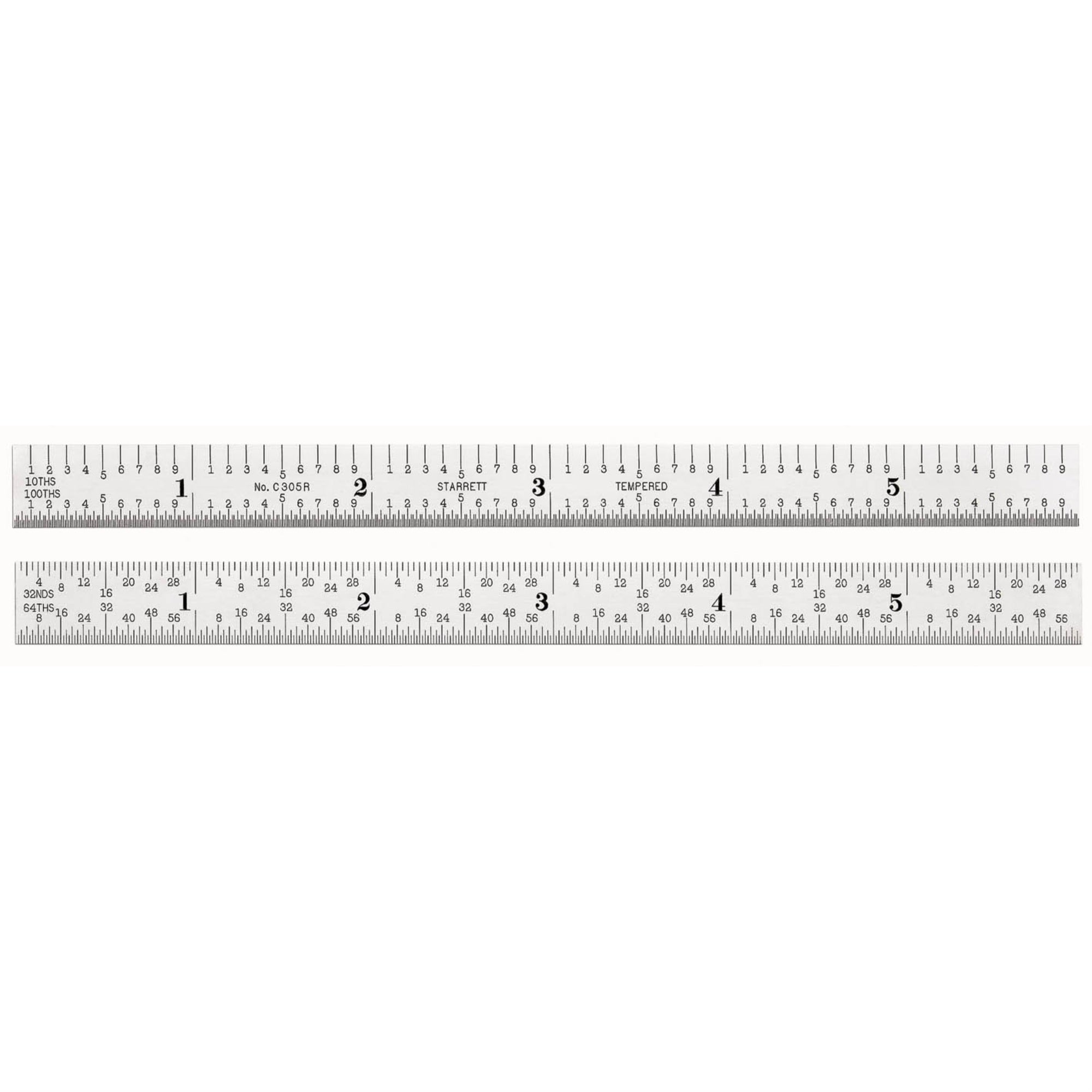 C305R-6 Full Flexible Steel Rule With Inch Graduations, 5R Style Graduations, 6 Length, 1/2 Width, 1/64 Thickness