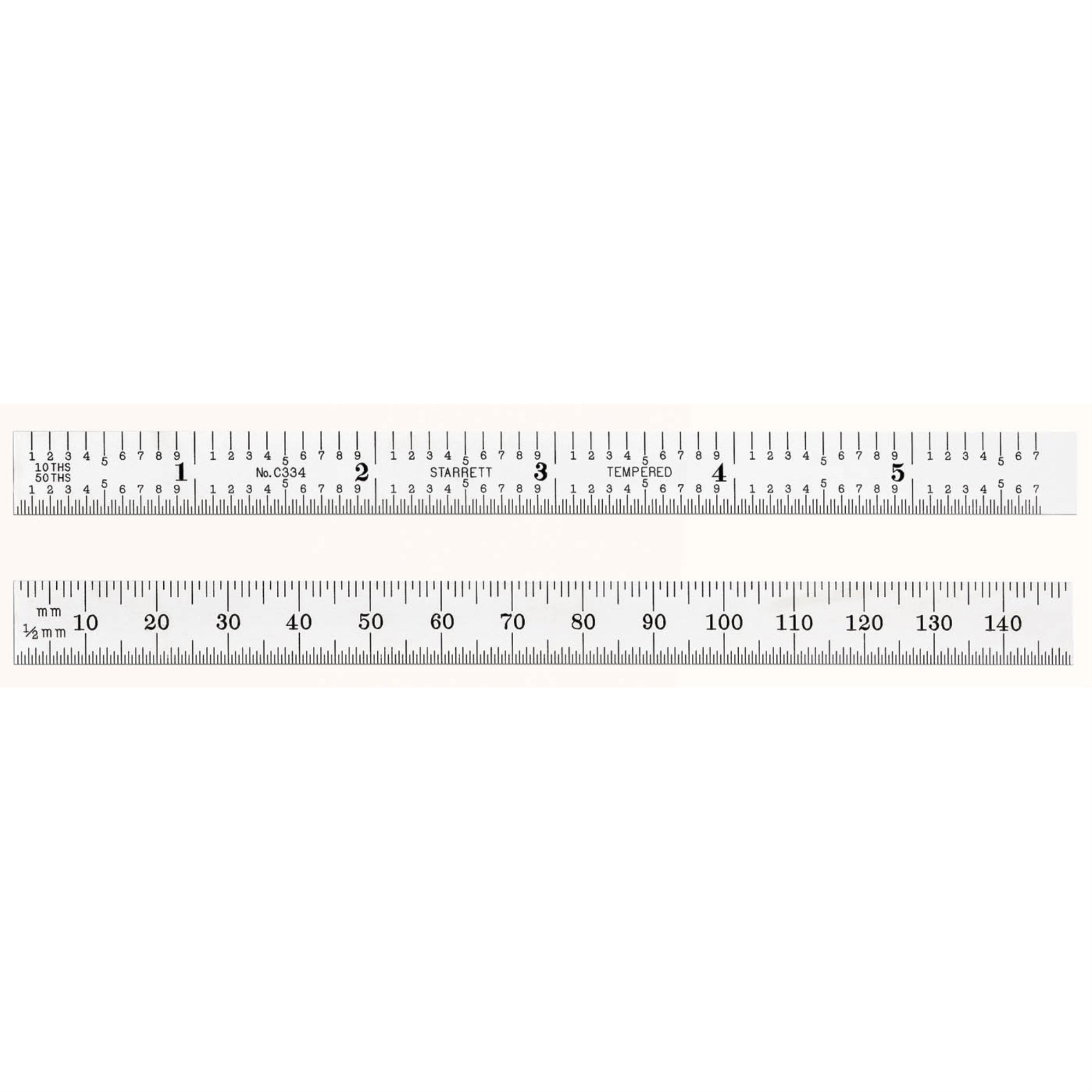 C334-150 150Mm/5-3/4 Full-Flexible Rule - Mm & Inch Graduations, Mm & 1/2Mm On One Side; Quick-Reading 10Ths & Aircraft Quick-