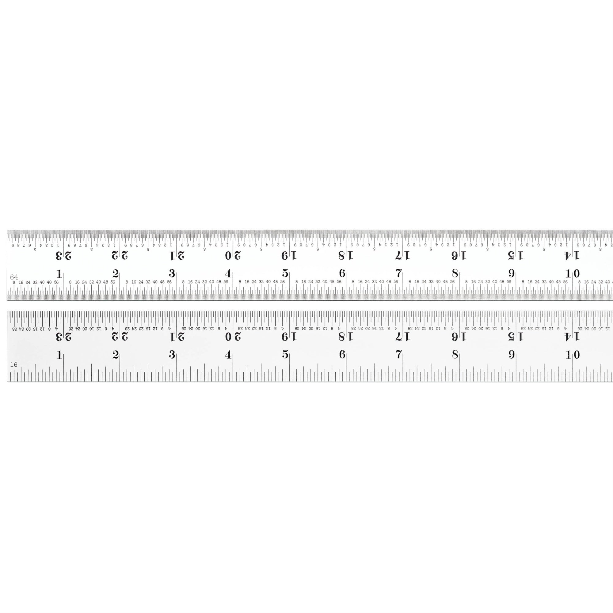 C607R-24 Spring Tempered Steel Rule With Inch Graduations, 7R Style Graduations, 24 Length, 1-1/4 Width, 3/64 Thickness
