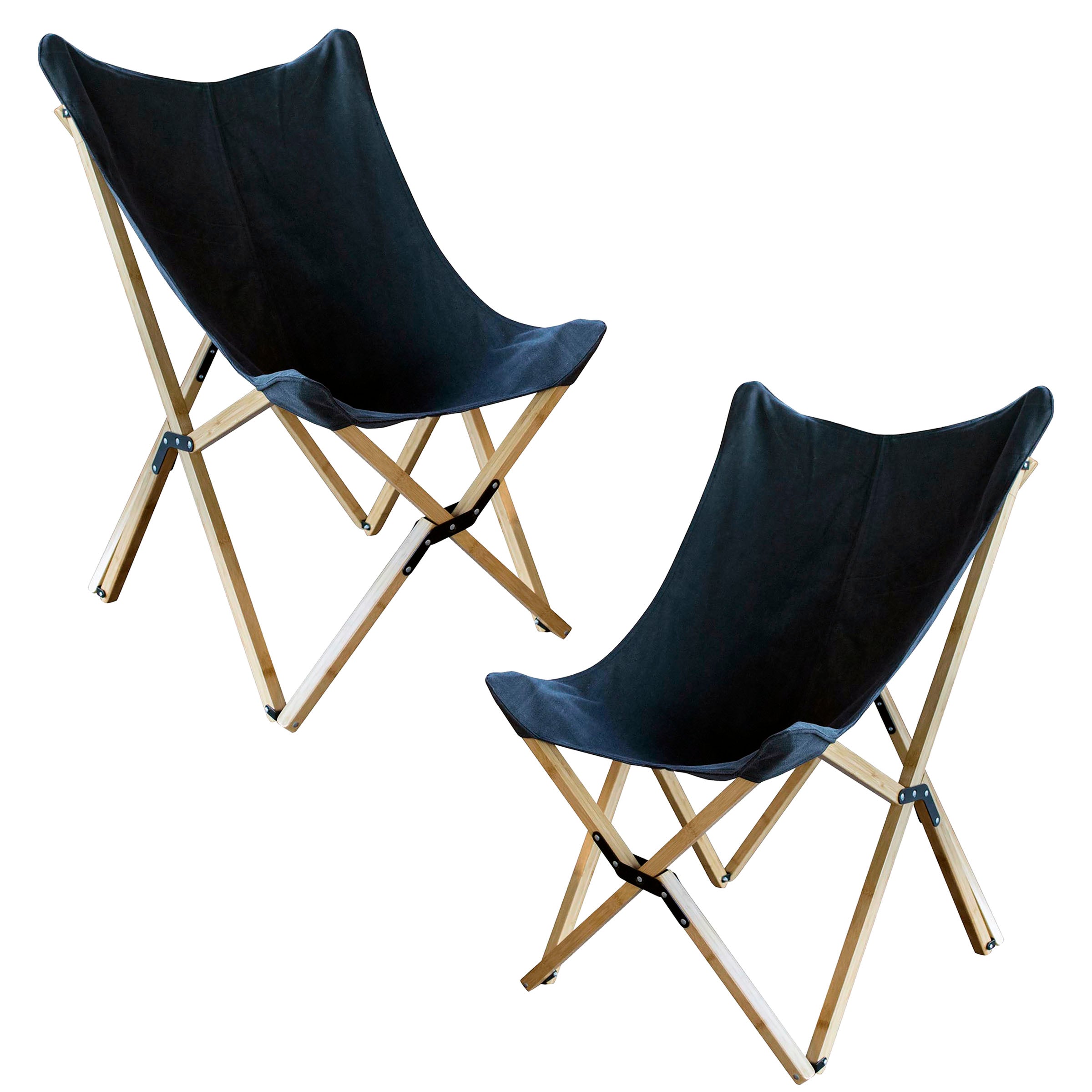 Canvas And Bamboo Butterfly Chair - Black - 2 Piece Set