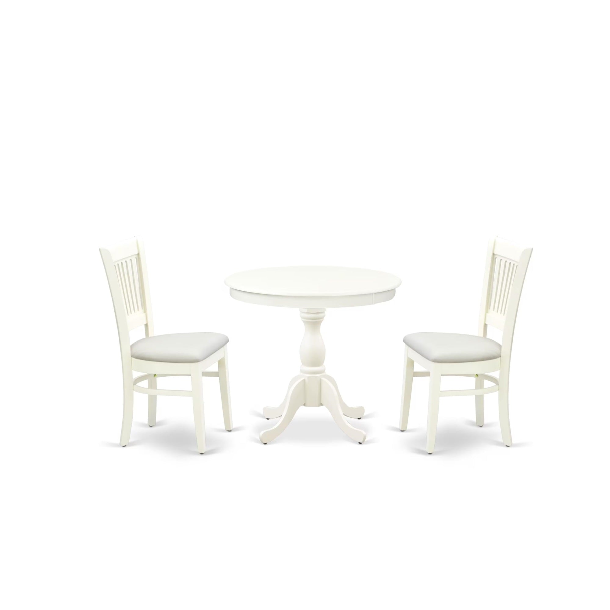 Casafoyer Amva3-Lwh-C 3 Piece Dining Set Contains A Round Kitchen Table With Pedestal And 2 Linen Fabric Dining Room Chairs, 36X36 Inch, Linen White
