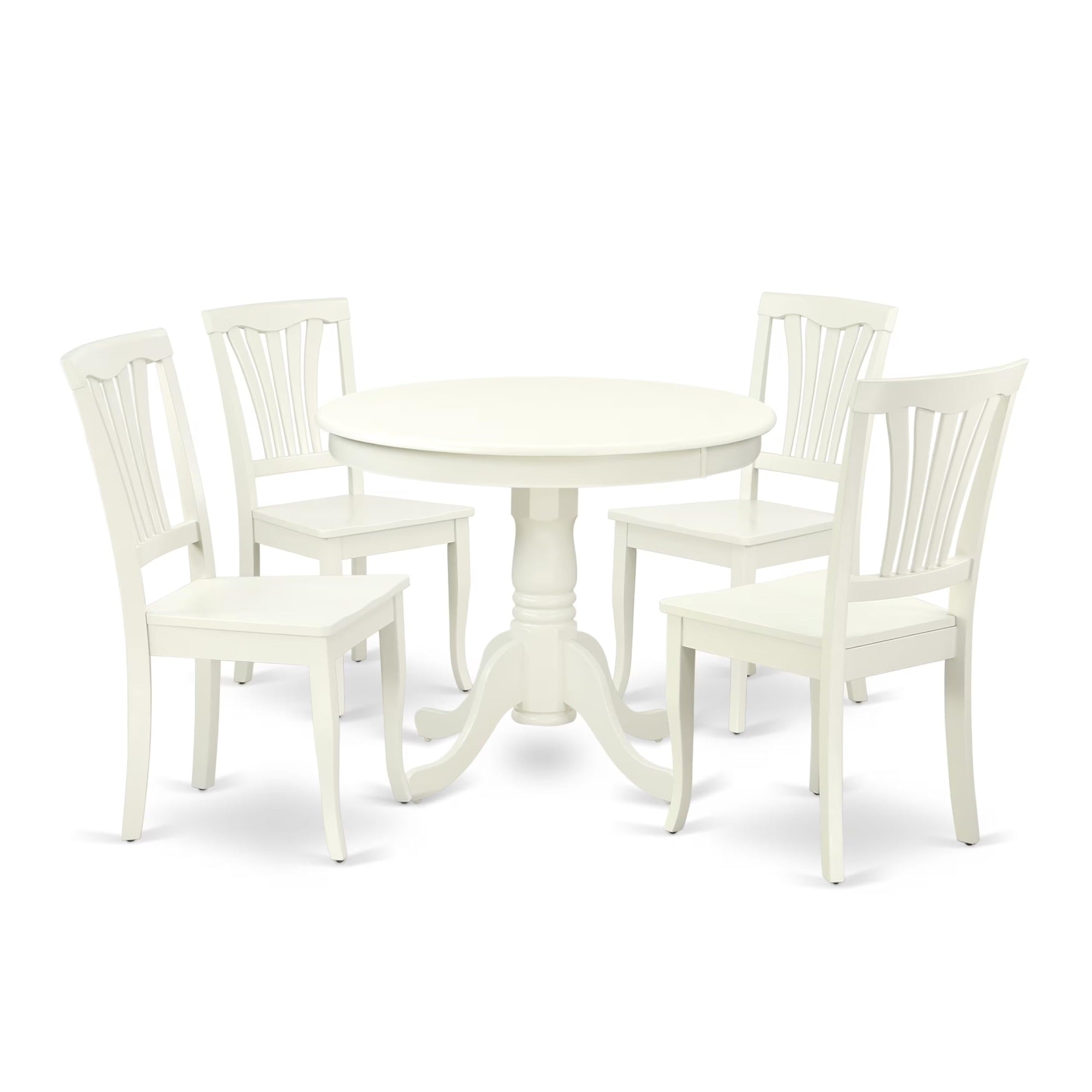 Casafoyer Anav5-Lwh-W 5 Piece Dining Room Table Set Includes A Round Kitchen Table With Pedestal And 4 Dining Chairs, 36X36 Inch, Linen White