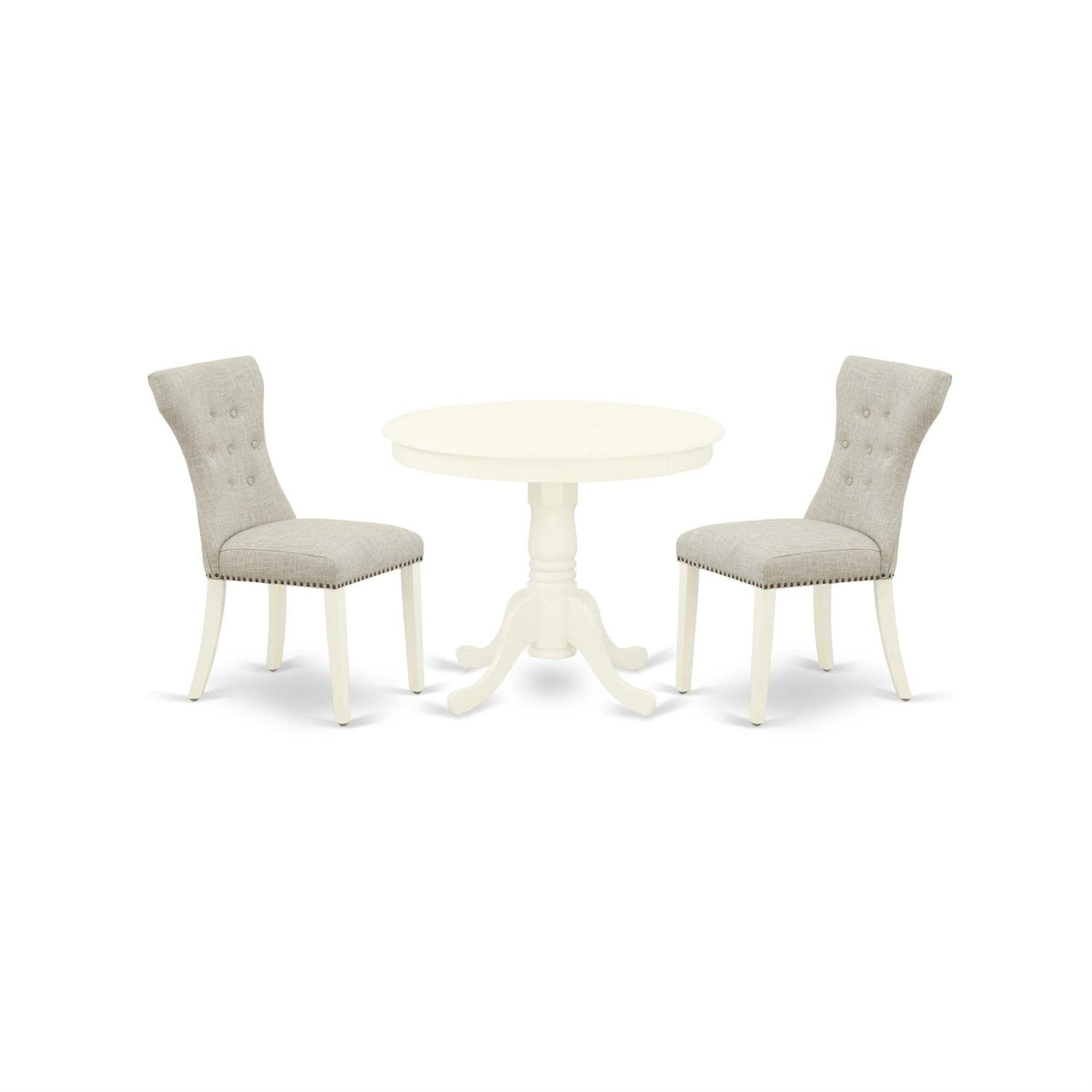 Casafoyer Anga3-Lwh-35 3 Piece Room Furniture Set Contains A Round Dining Table With Pedestal And 2 Doeskin Fabric Upholstered Chairs, Linen White