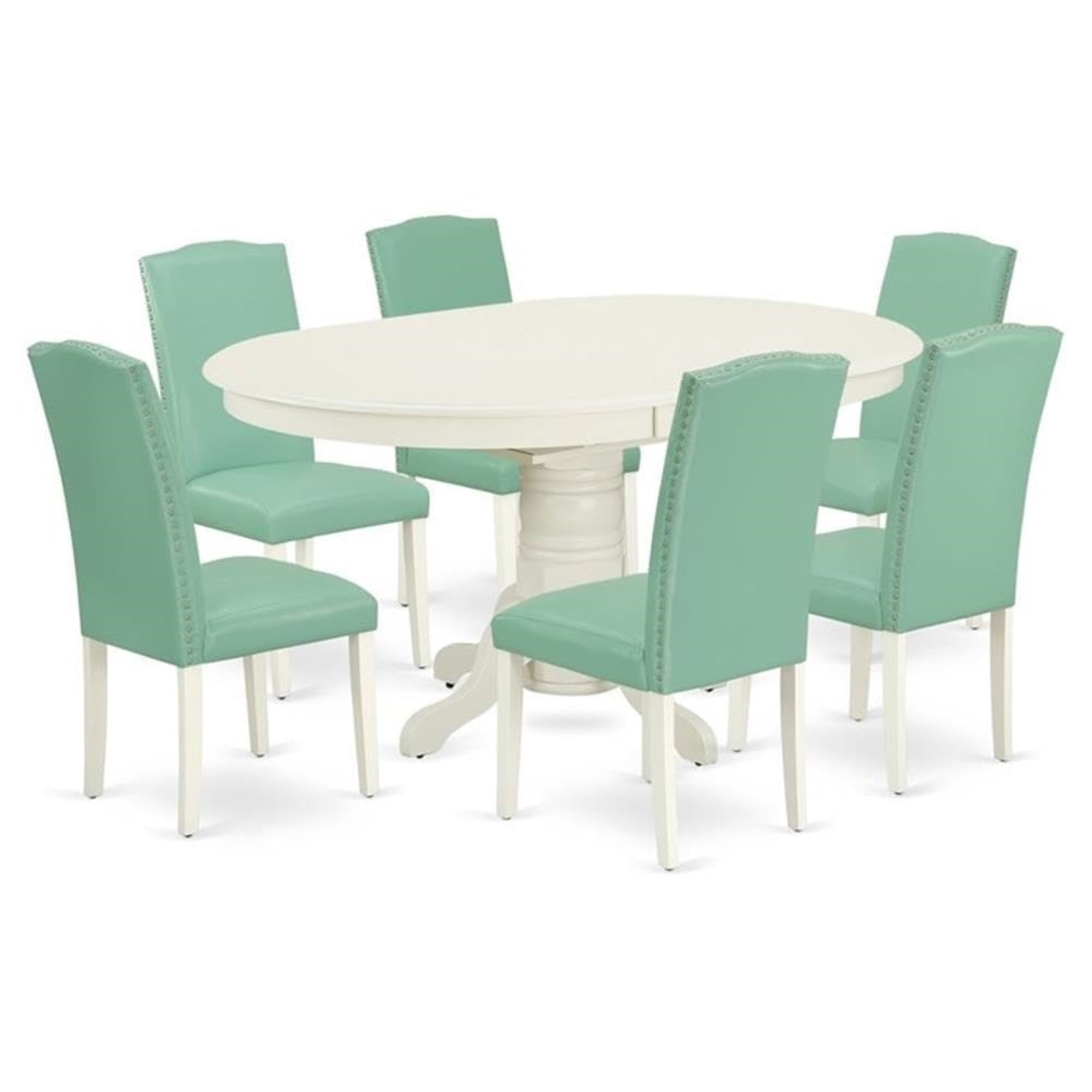 Casafoyer Aven7-Lwh-57 Avon 7 Piece Room Furniture Set Consist Of An Oval Wooden Table With Leaf And 6 Pond Faux Leather Parsons Dining Chairs, 42X60 Inch, Linen White