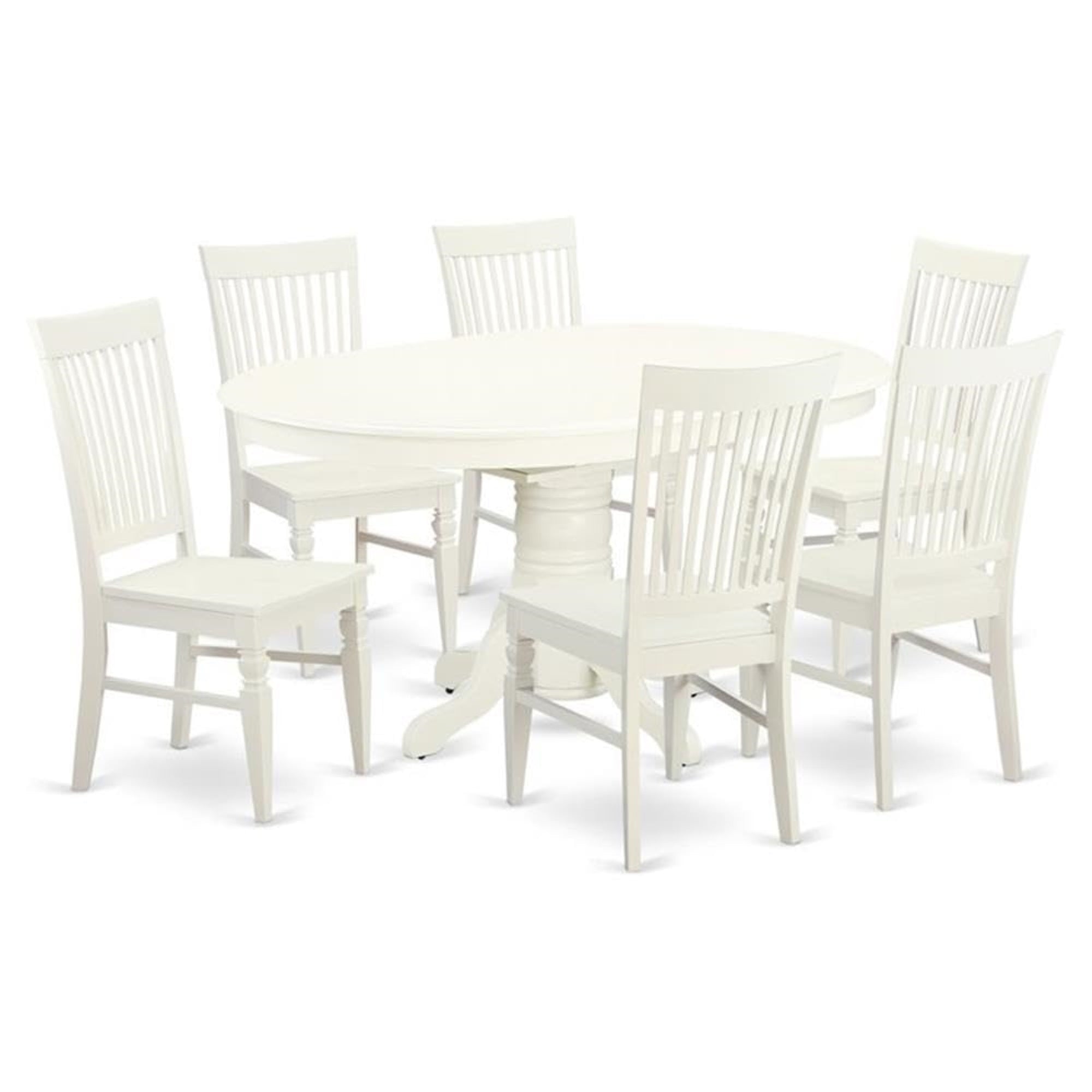Casafoyer Avon 7 Piece Kitchen Set Consist Of An Oval Table With Leaf And 6 Dining Room Chairs, 42X60 Inch, Linen White