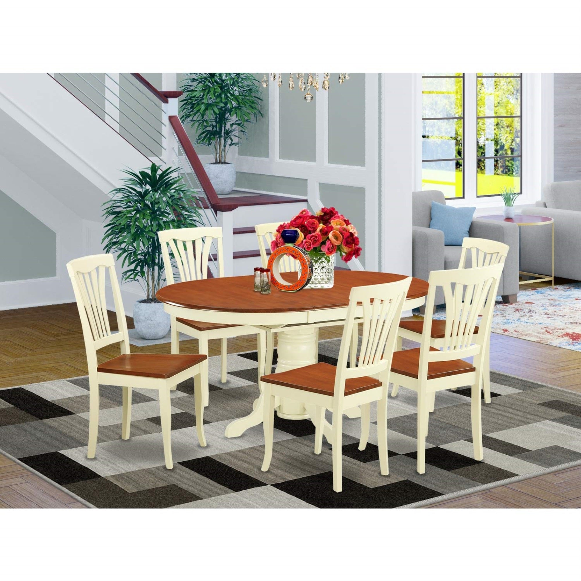 Casafoyer Avon7-Whi-W 7 Piece Dining Set Consist Of An Oval Dining Table With Leaf And 6 Kitchen Chairs, 42X60 Inch, Buttermilk & Cherry