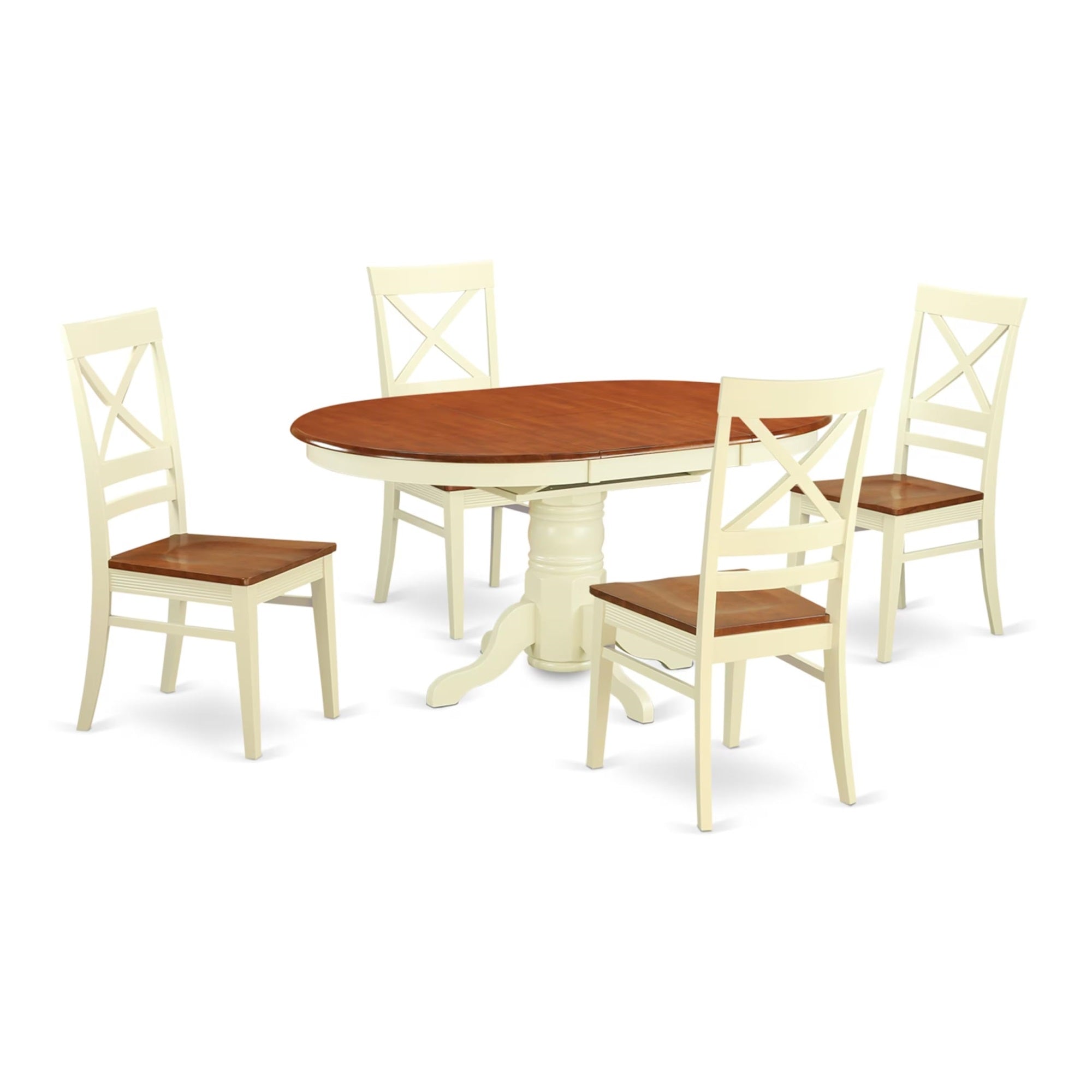 Casafoyer Avqu5-Whi-W Modern Dining Table Set - 4 Great Wood Dining Chairs With Wooden Seat - A Leaf Dining Table (Cherry & Buttermilk Finish)